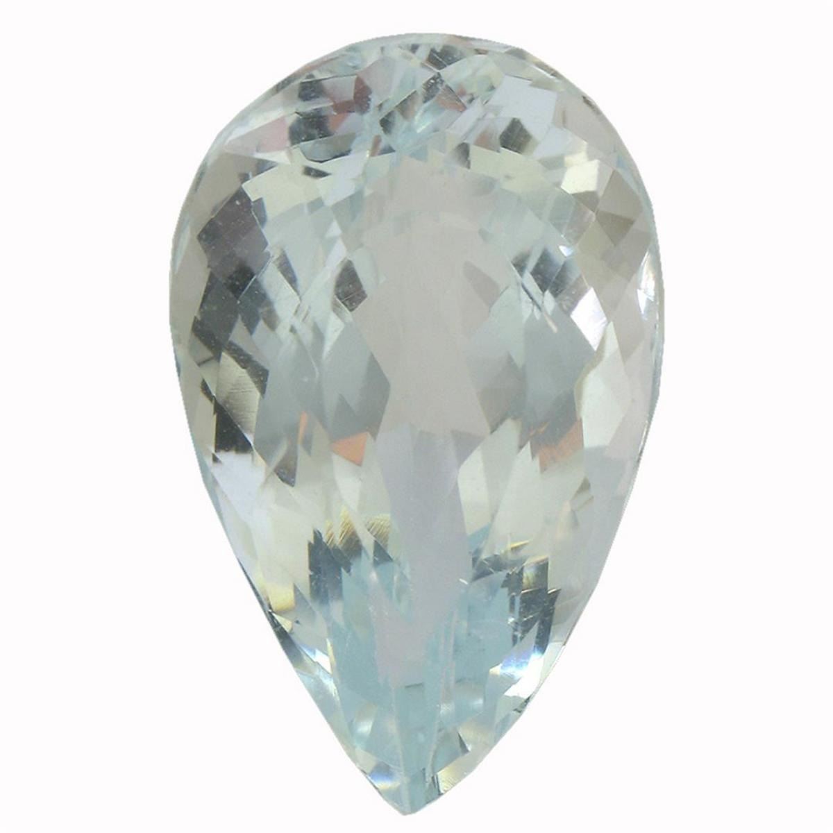 One pear cut natural aquamarine exact weight 8.53ct., clarity is slightly included, type I, medium, very slightly grayish, very slightly greenish blue color, (GIA vslgB 5/3), cut is good. Westfield Appraised.