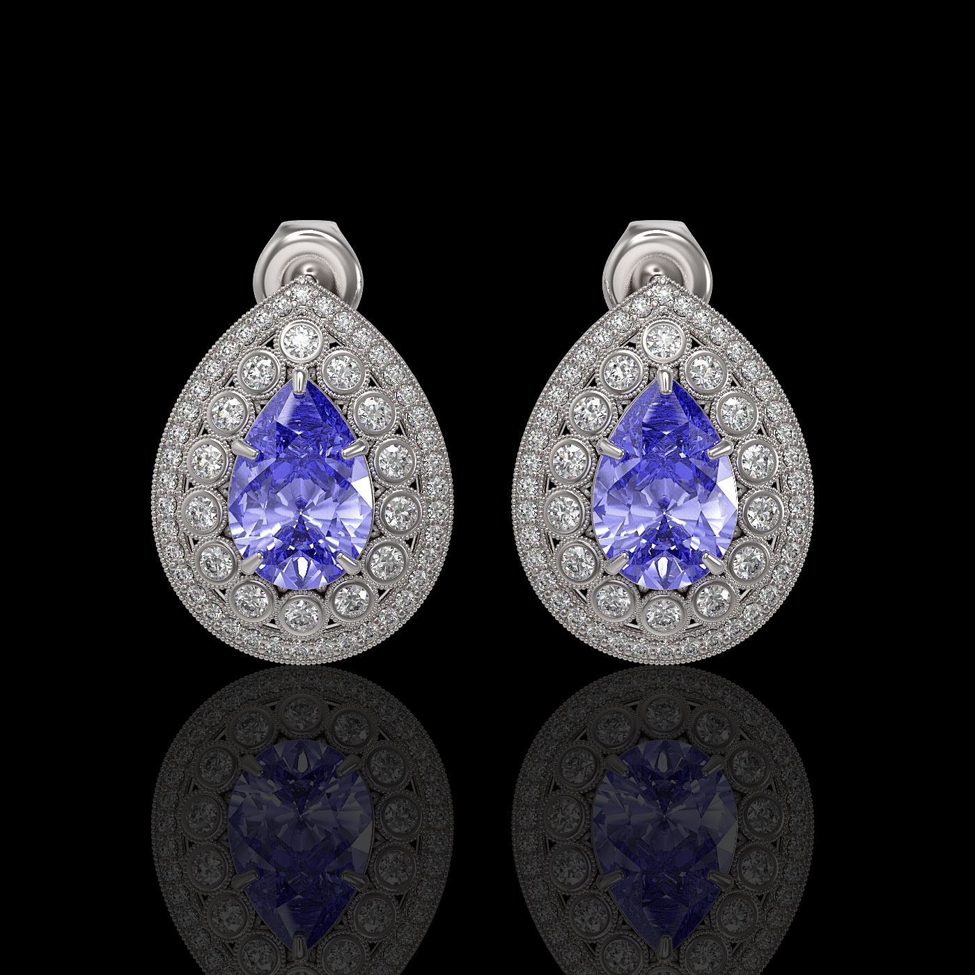 REF-436M4G - SKU: 43181 ---- 8.54 ctw Tanzanite & Diamond Victorian Earrings 14K White Gold