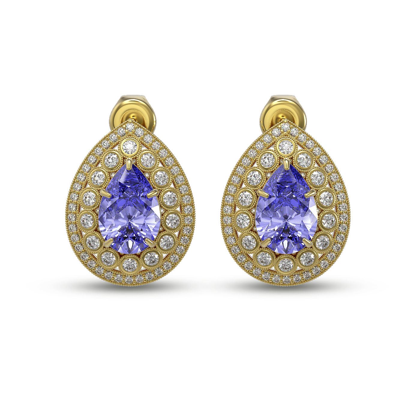 SKU: 43183 ---- 8.54 ctw Tanzanite & Diamond Victorian Earrings 14K Yellow Gold
