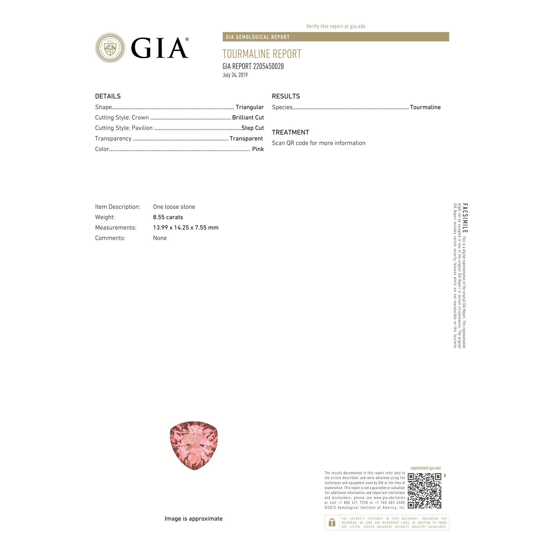 8.55ct Triangular Shape Pink Tourmaline 13.99 x 14.25 x 7.55 mm GIA #2205450028 #B1012