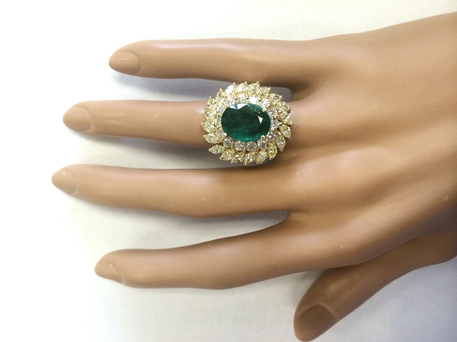 8.57 CTW Natural Emerald And Diamond Ring In 14k Yellow Gold