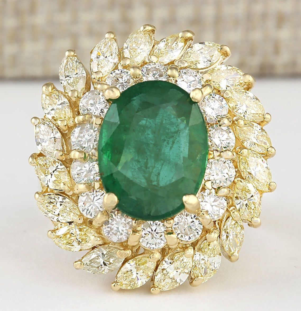 8.57 CTW Natural Emerald And Diamond Ring In 18K Yellow Gold