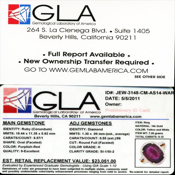 In the event that an item is listed as having an "Appraisal Estimate", this represents WAR's in-house estimate of what the item would appraise for at Gem Labs of America (GLA), Beverly Hills, CA. Actual appraisal of the item at GLA is the responsibility of the Bidder, however WAR may assist, at its discretion, in related logistics. WAR does provide the following guaranty (the "WAR 5% Loose Gem Guaranty") relative to Appraisal Estimate values of LOOSE GEMS: In the event that the GLA appraised value is not such an amount that the Bidder's winning bid is five percent (5%) or less of the GLA appraised value, then WAR, in it's discretion, will either refund such amount of the Bidder's winning bid and related charges so that the winning bid equals five percent (5%) of the GLA appraised value, or, instead issue a full refund on the item and reimburse the Bidder for the GLA appraisal fees. The Bidder may also opt to retain the item, in which case the WAR 5% Gem Guaranty shall not apply relative to the particular item.