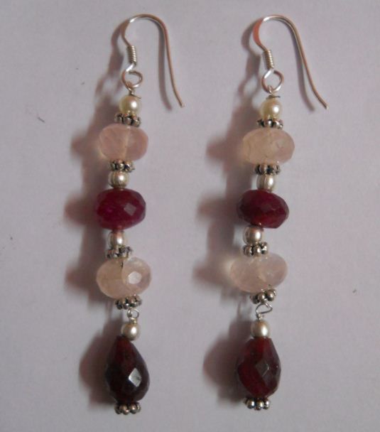 8.580g Earring of Rose Quartz and Ruby Sterling Silver