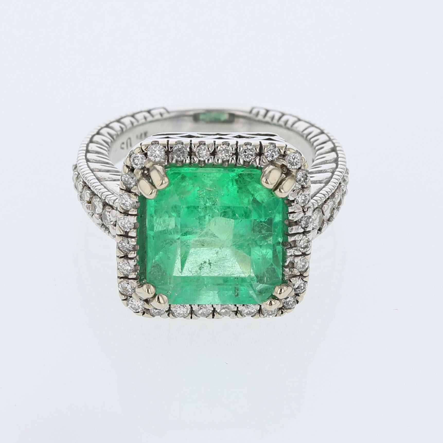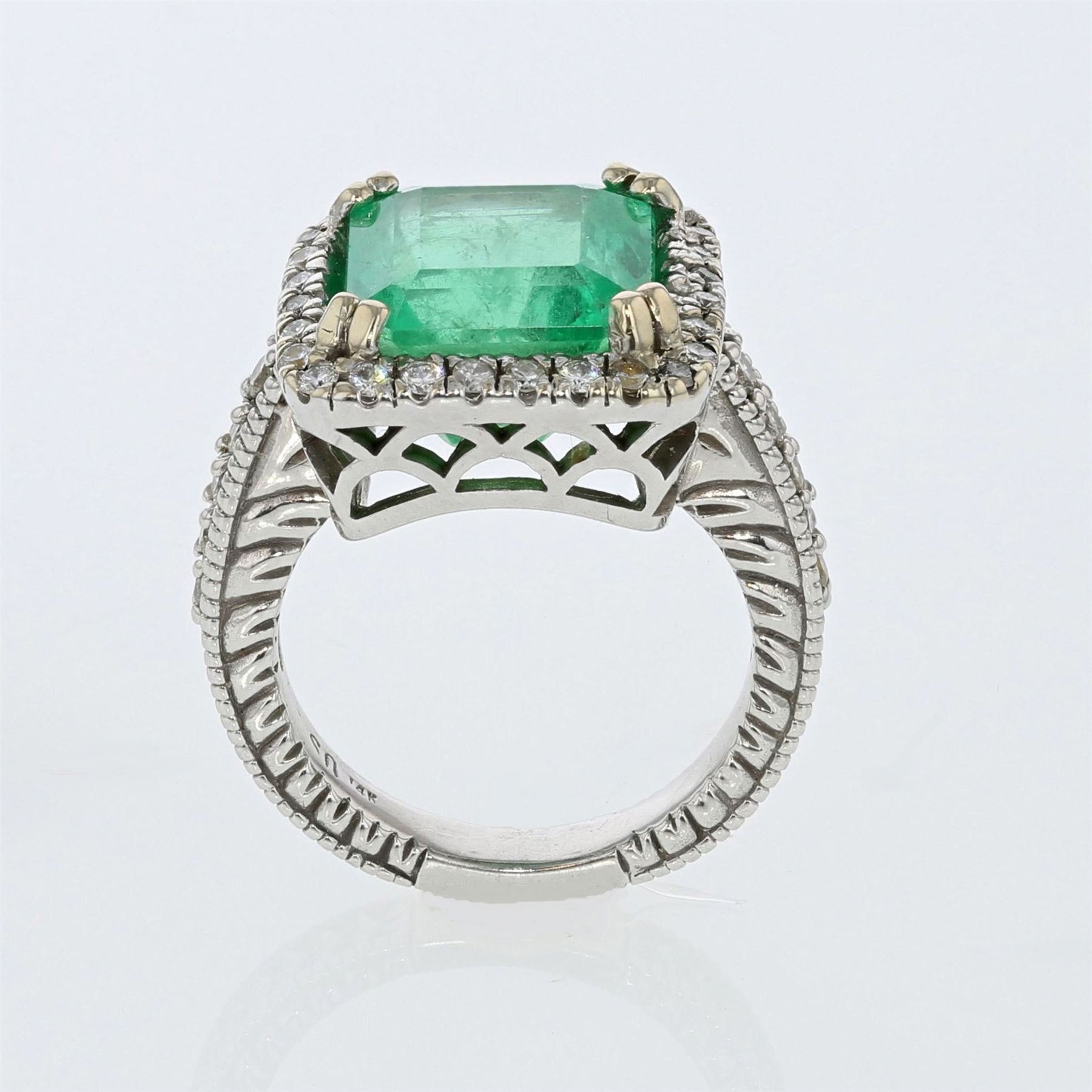 14K White Gold Ring 10.96gm / Natural Colombian Emerald 8.50ct / Diamonds 1.10ct #AV9432407