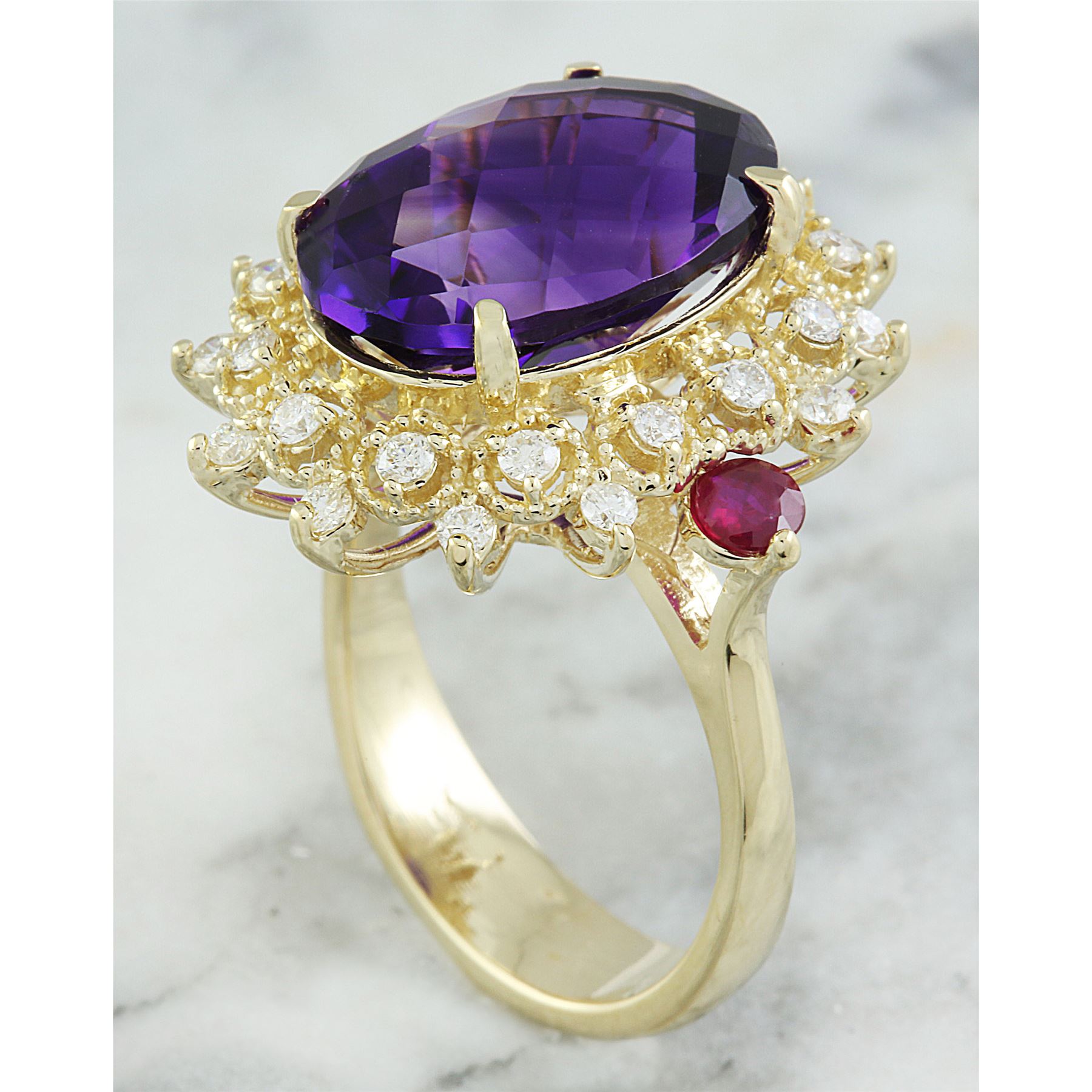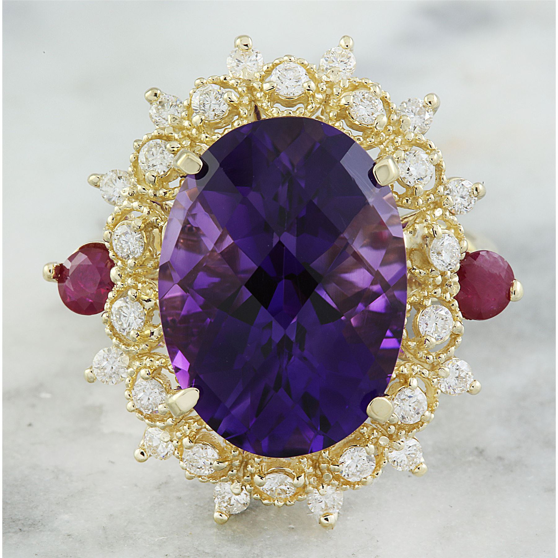 8.60 CTW Amethyst Ruby 14K Yellow Gold Diamond Ring