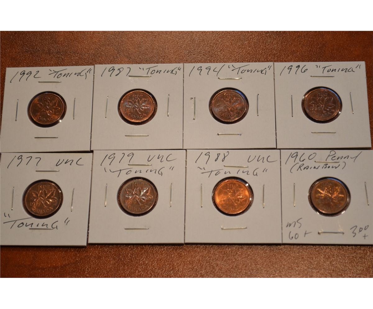 (8) 60's,70's,80's Mixed Canada 1-Cent - UNC w/Toning