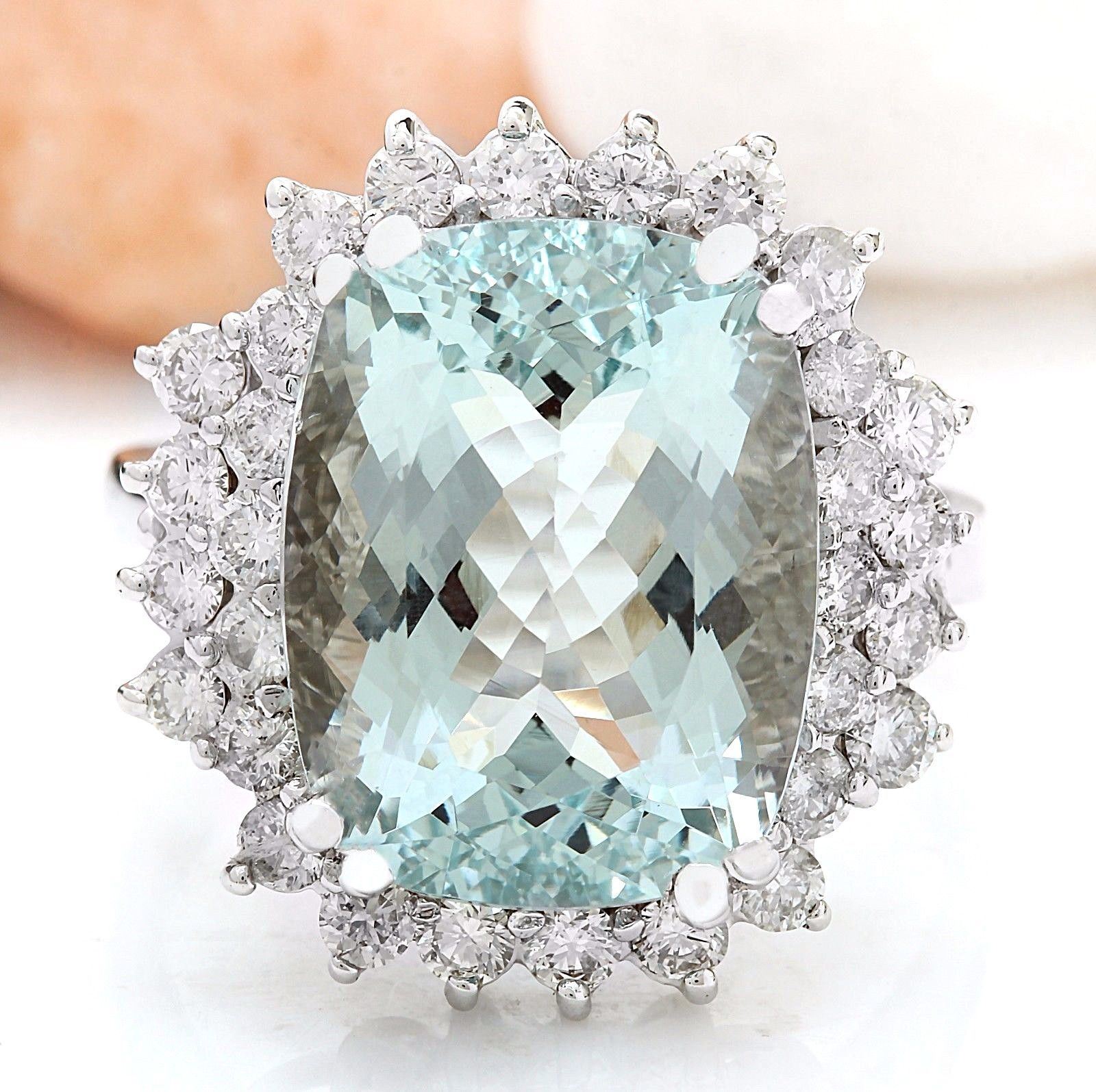 8.61 Carat Natural Aquamarine 18K Solid White Gold Diamond Ring