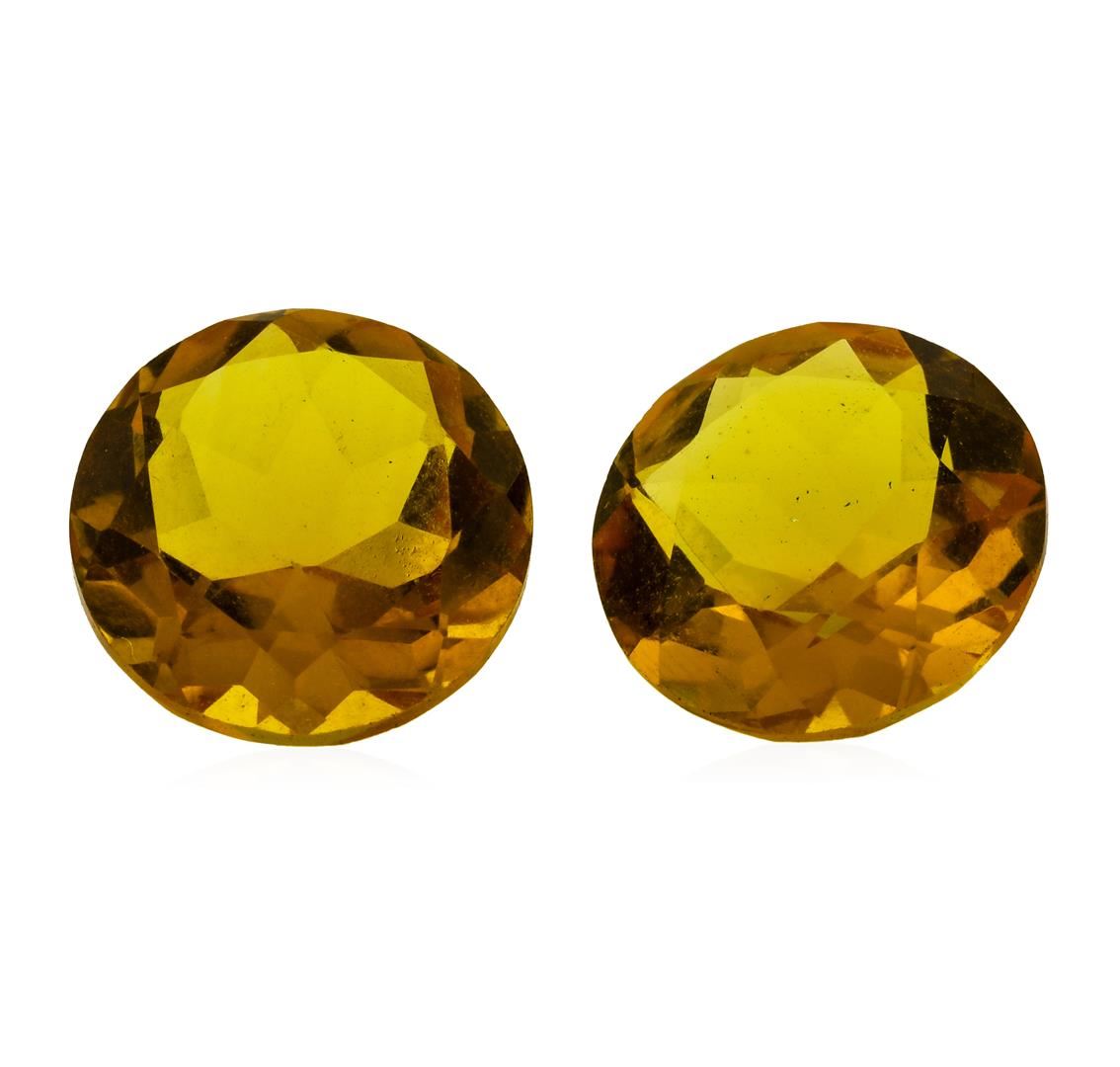 One natural round cut citrine quartz parcel of two with an exact weight of 8.62ctw., clarity is eye clean, yellowish orange, medium dark. Gemological Appraisals Services estimates the retail value at $344.8 GAS Appraised.