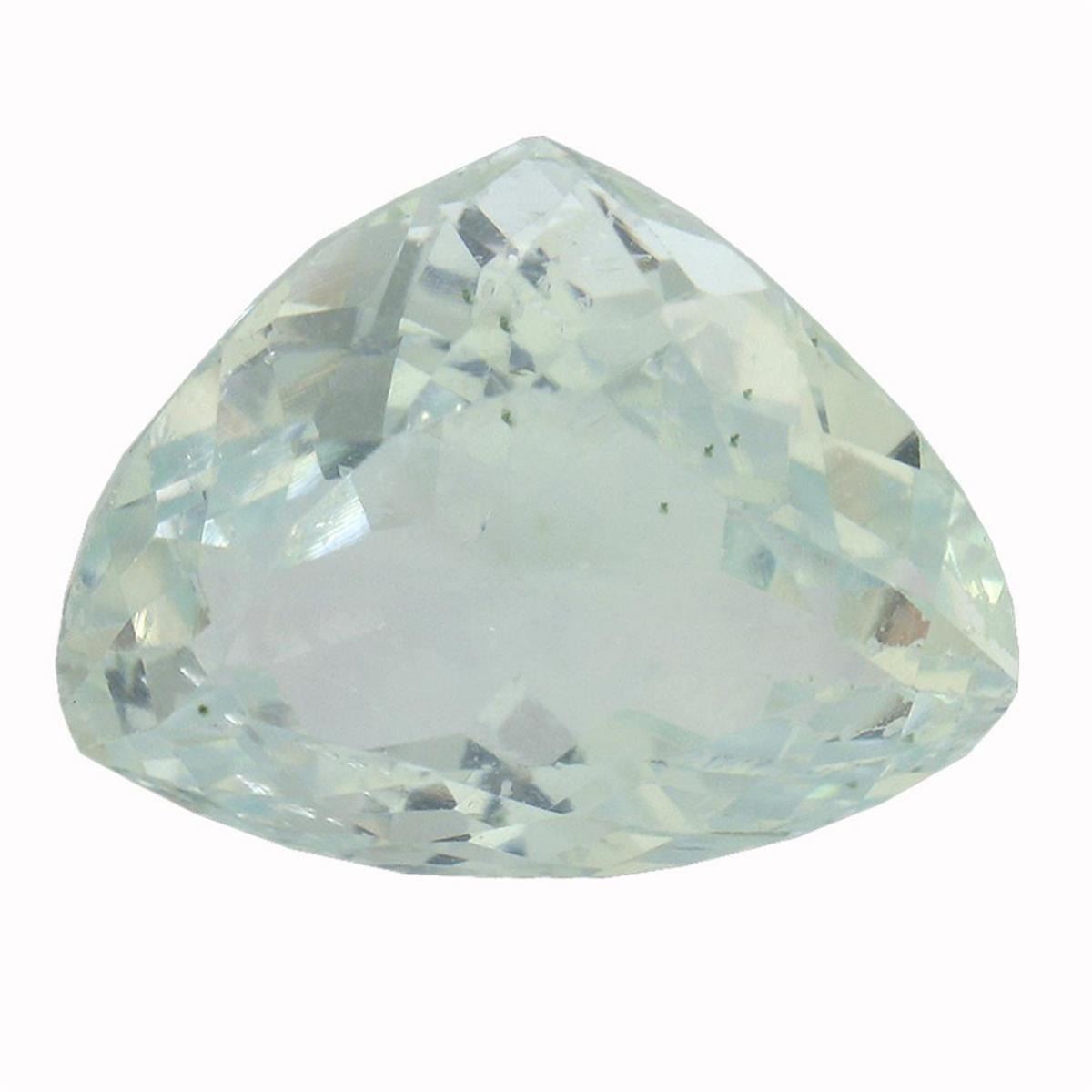 One triangle cut natural aquamarine exact weight 8.63ct., clarity is slightly included, type I, medium, slightly grayish, very slightly greenish blue color, (GIA vslgB 5/2), cut is good. Westfield Appraised at $3,325.00.
