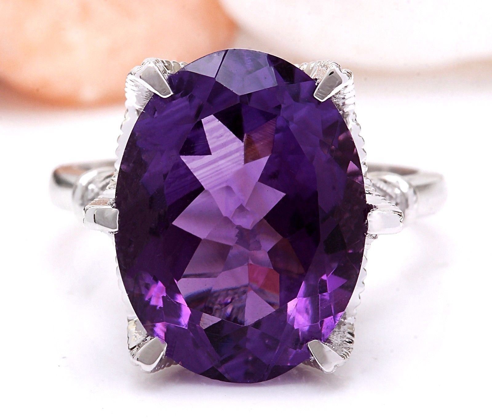 8.64 Carat Natural Amethyst 18K Solid White Gold Diamond Ring