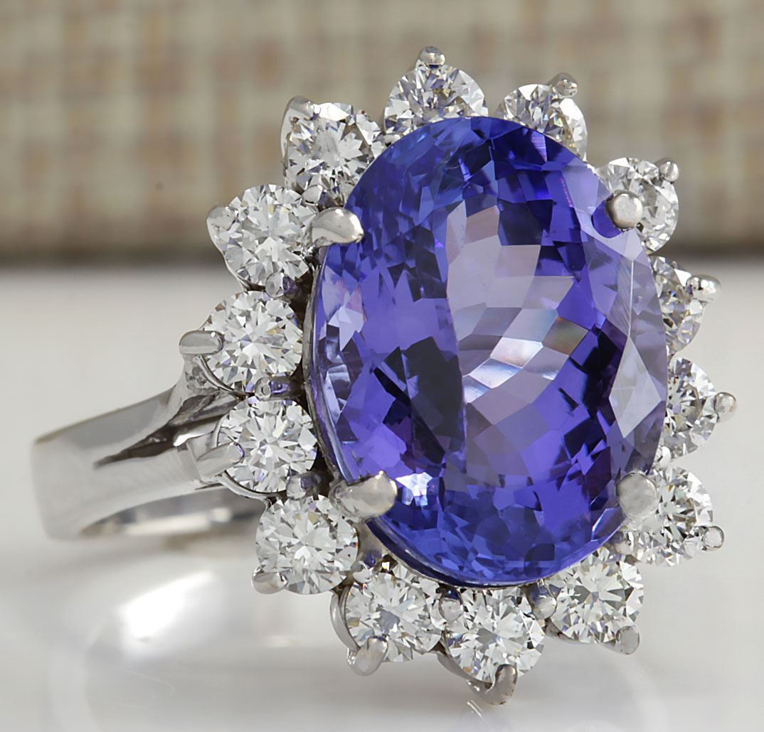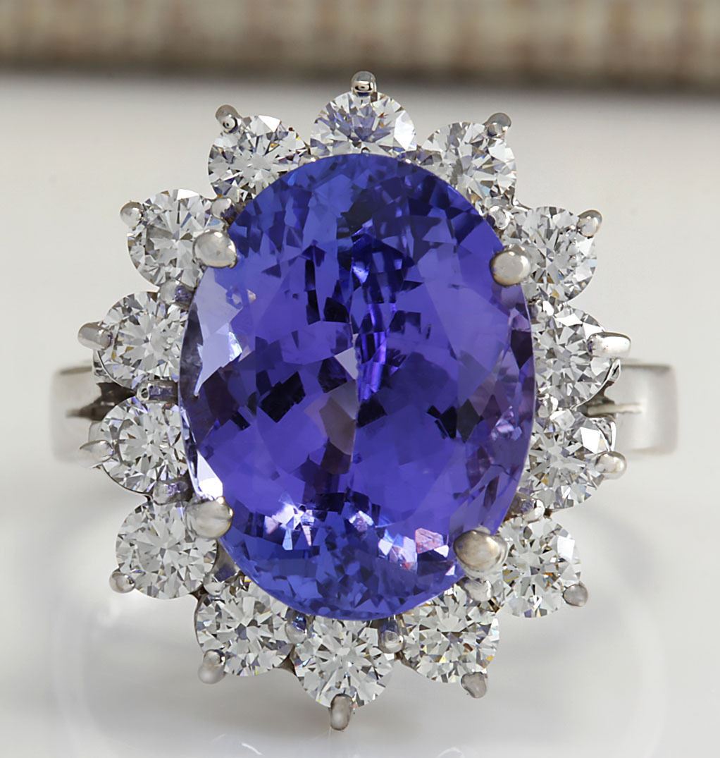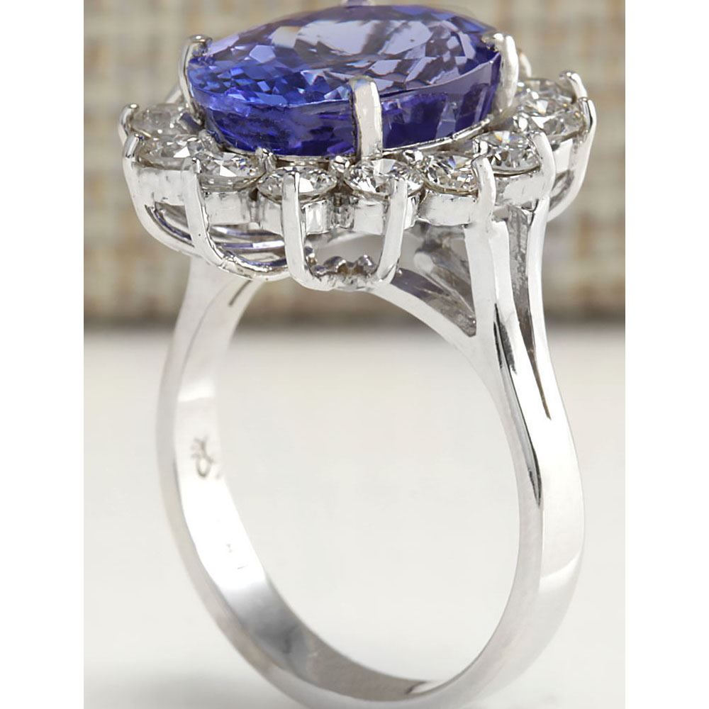 8.65 CTW Natural Blue Tanzanite And Diamond Ring 14K Solid White Gold