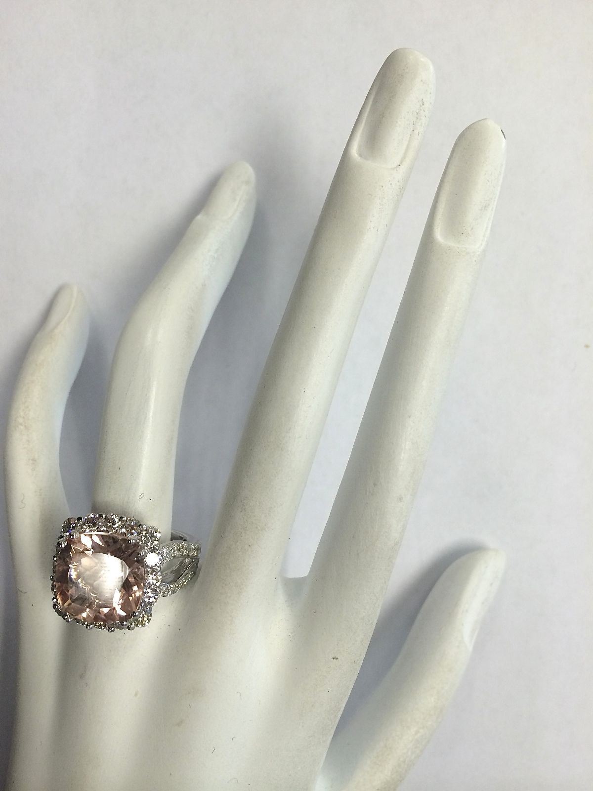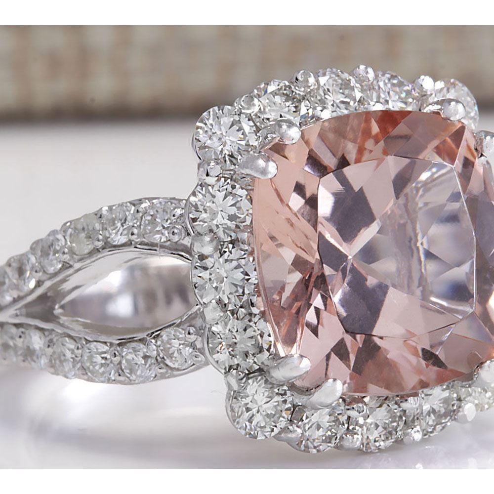8.66 CTW Natural Peach Morganite And Diamond Ring In 18K Solid White Gold