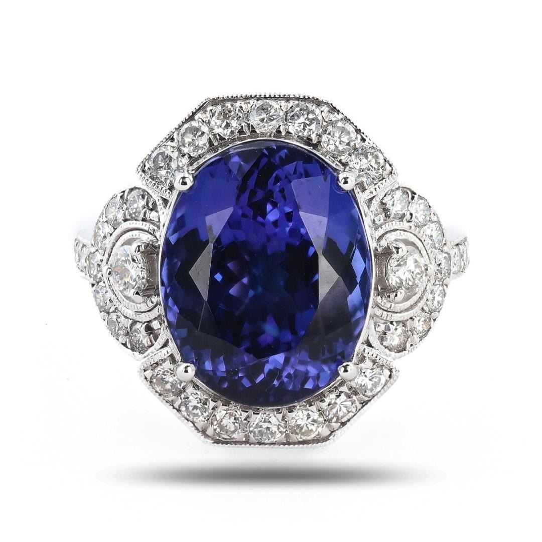 8.67 ctw Tanzanite and 0.98 ctw Diamond Platinum Ring (GIA CERTIFIED)