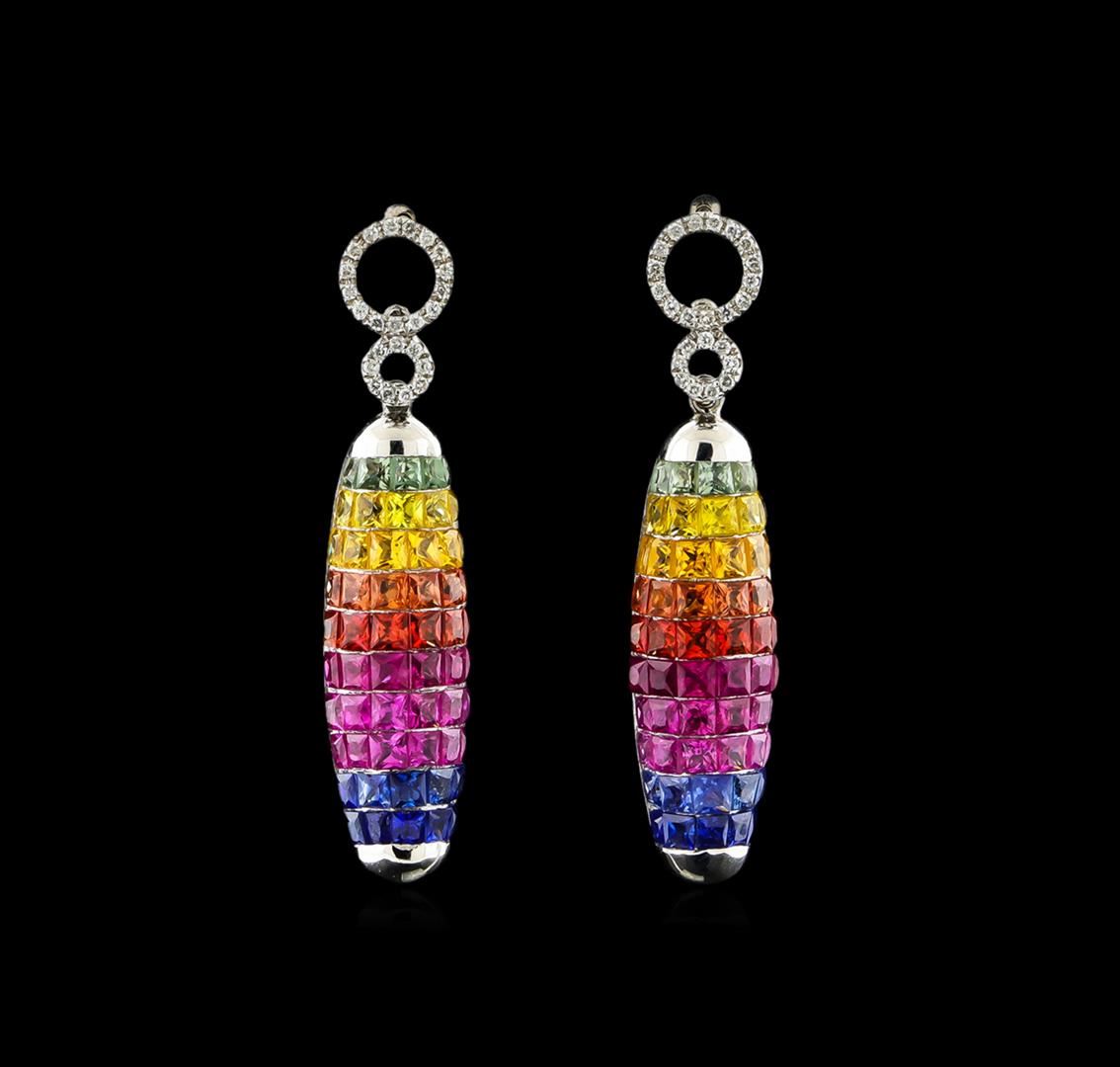 One pair of earrings featuring: 14KT white gold weighing approximately 8.7 grams containing multi color sapphires with a total weight of 8.72ct and diamonds with a total weight of 0.22ct.