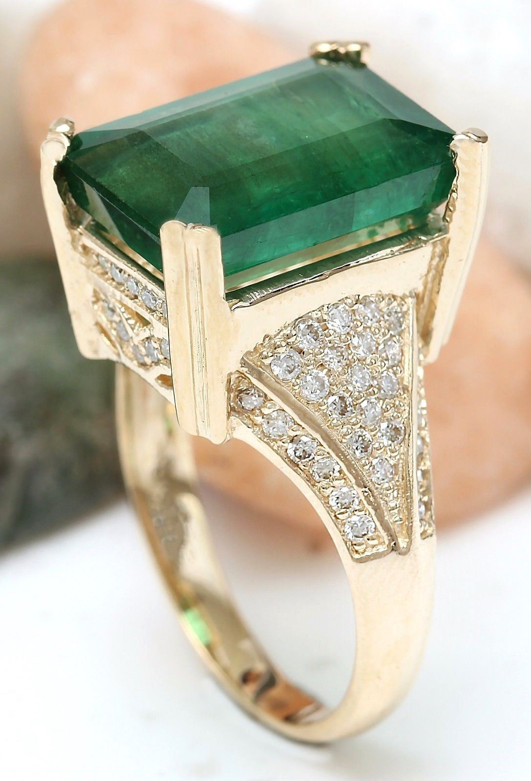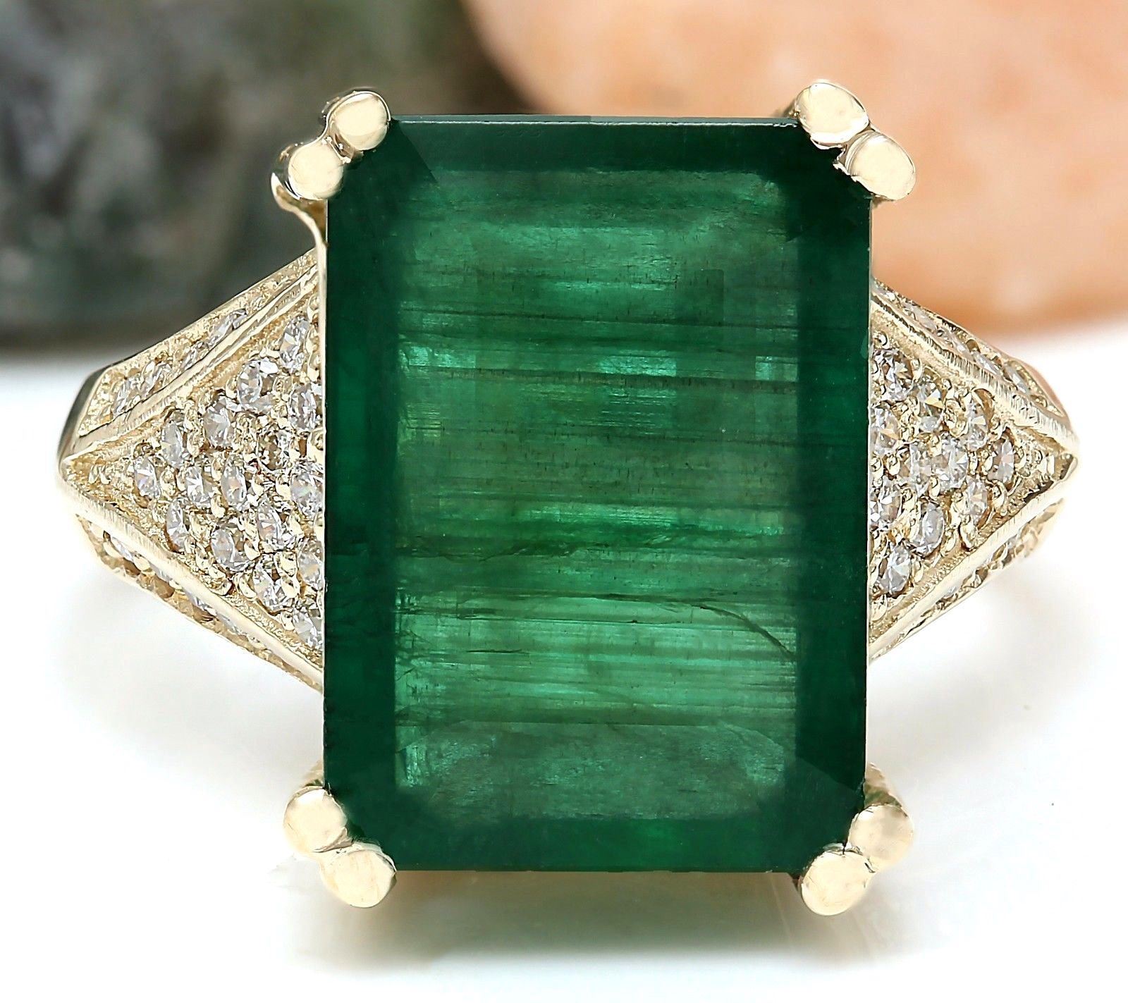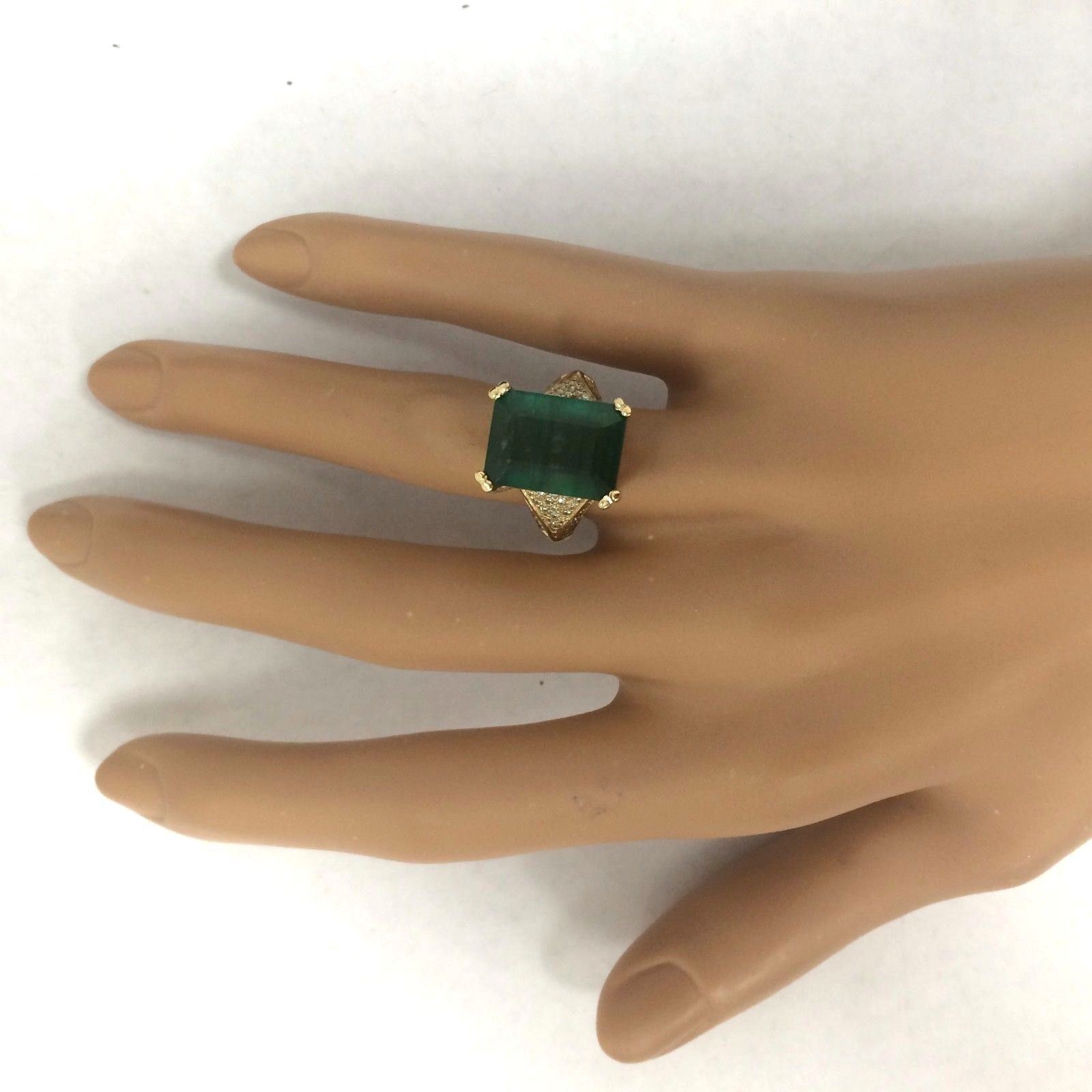 8.73 Carat Natural Emerald 18K Solid Yellow Gold Diamond Ring