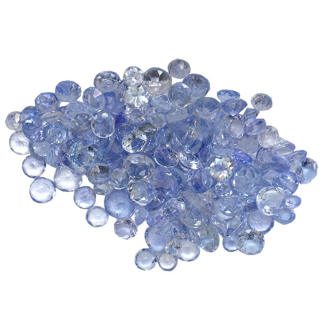 One hundred fifty round mixed cut natural tanzanites exact total weight 8.74ct., clarity is eye clean, type I, medium dark, very slightly grayish, bluish violet color, (GIA bV 6/3), cut is good.    Transmitting light with no distortion, transparent. Color grade is an average for the group. Graded in the setting. Tanzanite is a very rare gemstone that is only found in the country of Tanzania. Originally discovered in 1967. Tiffany & Company, named the stone Tanzanite. It is found in the Usumburu Mountains that border the Umba Valley of northern Tanzania. Tanzanite occurs in gray, brown, violet, blue, reddish-purple, & green. The gem is interesting because of its exceptional pleochroism. Rotated in different directions a tanzanite will exhibit multiple changes of color. Tanzanite has a low tolerance to ultrasonic cleaning, and should not be cleaned using this method. Westfield Appraised.