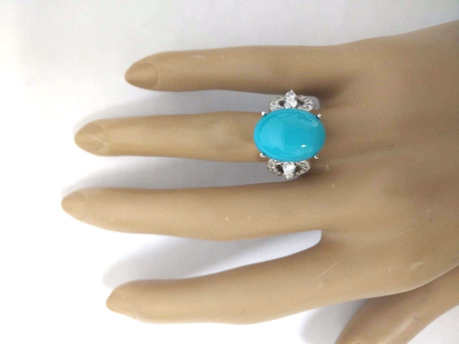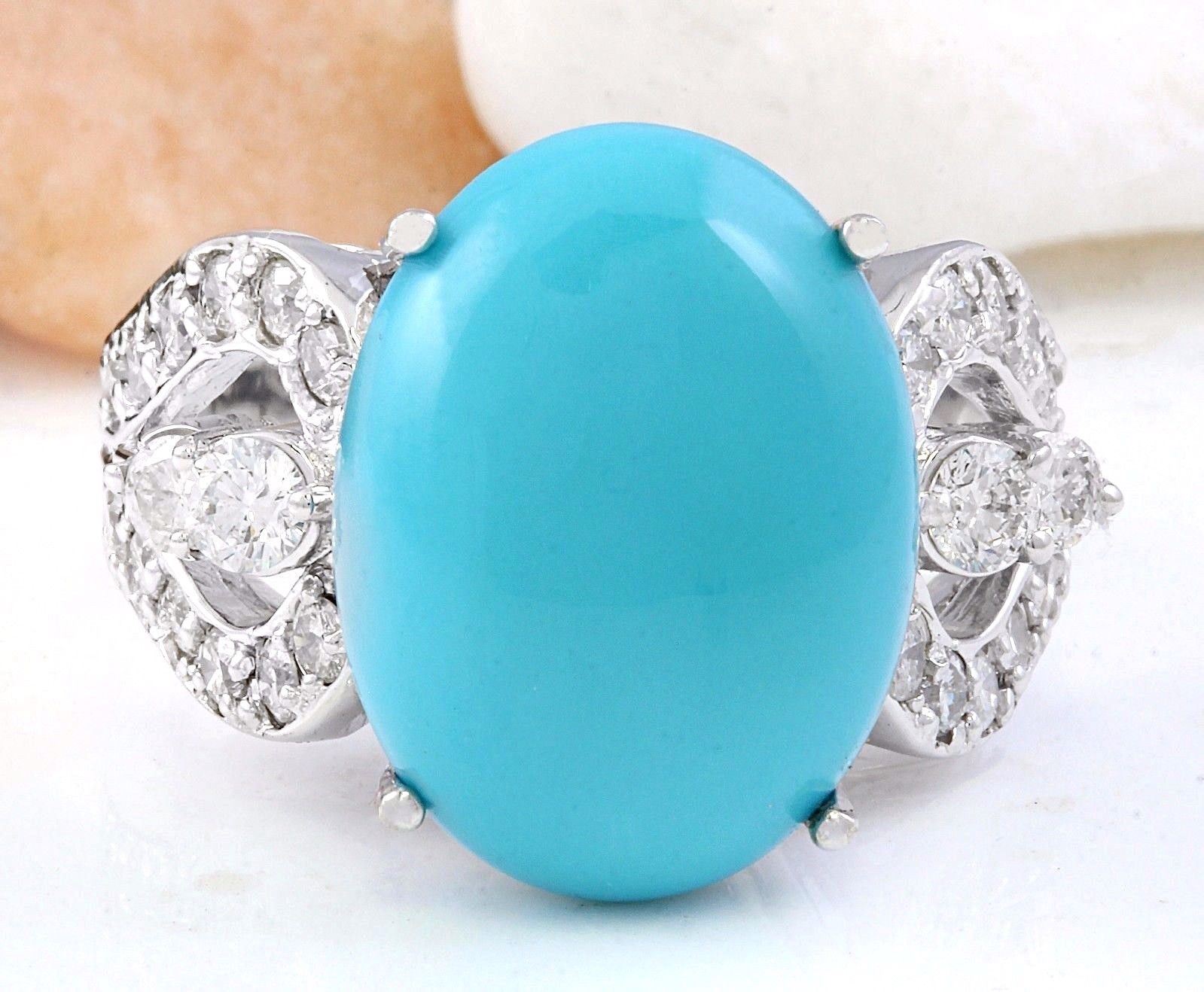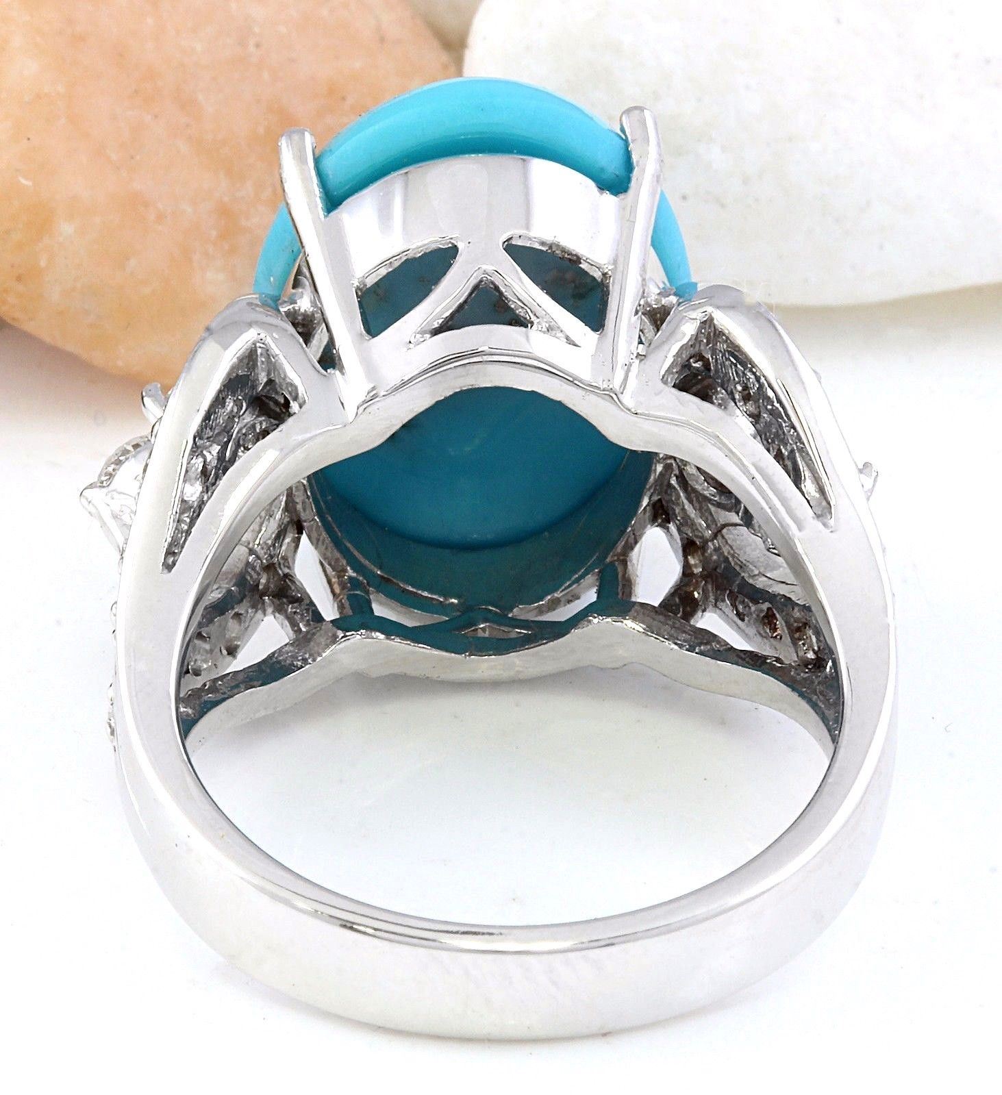 8.75 Carat Natural Turquoise 14K Solid White Gold Diamond Ring