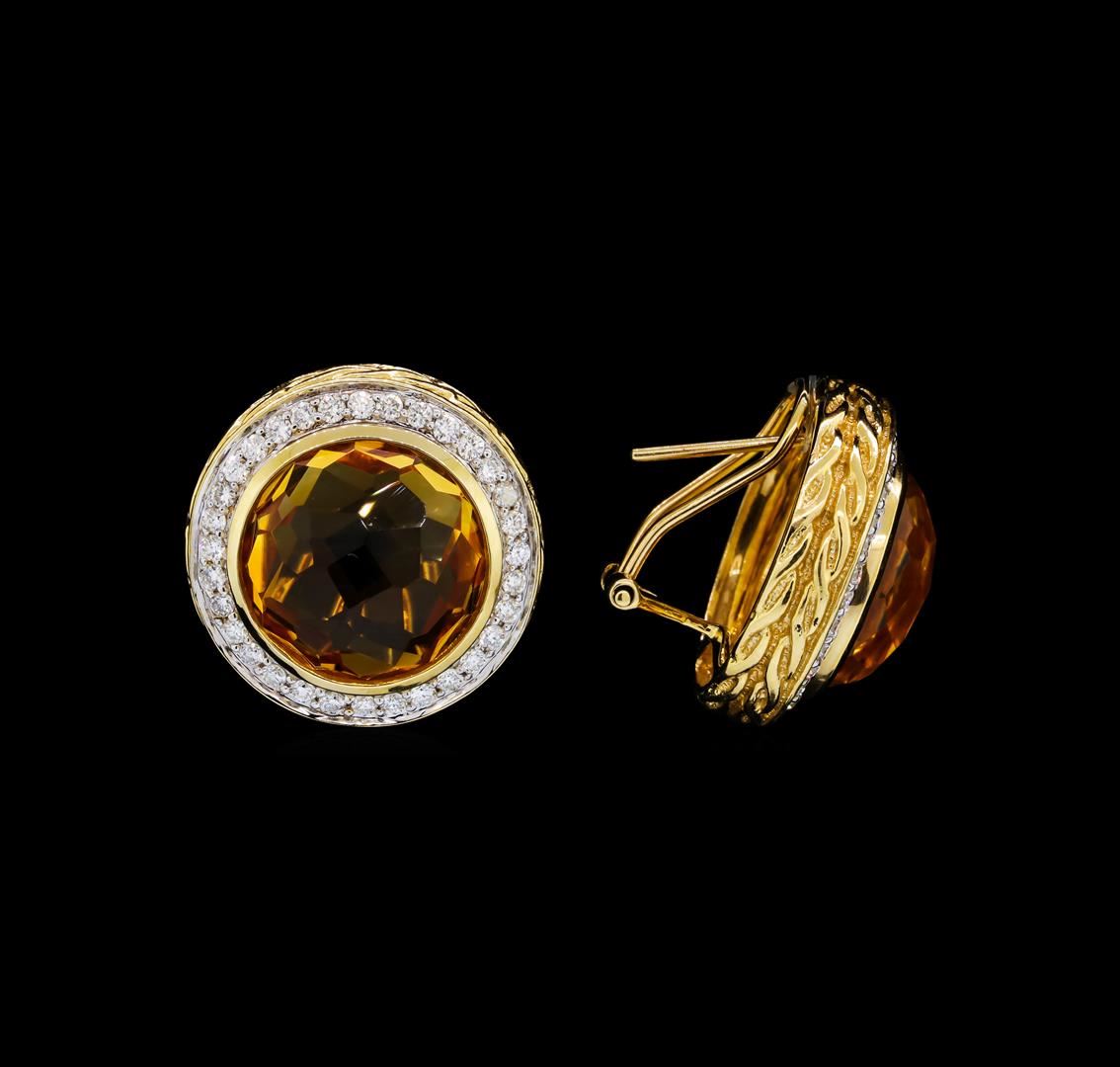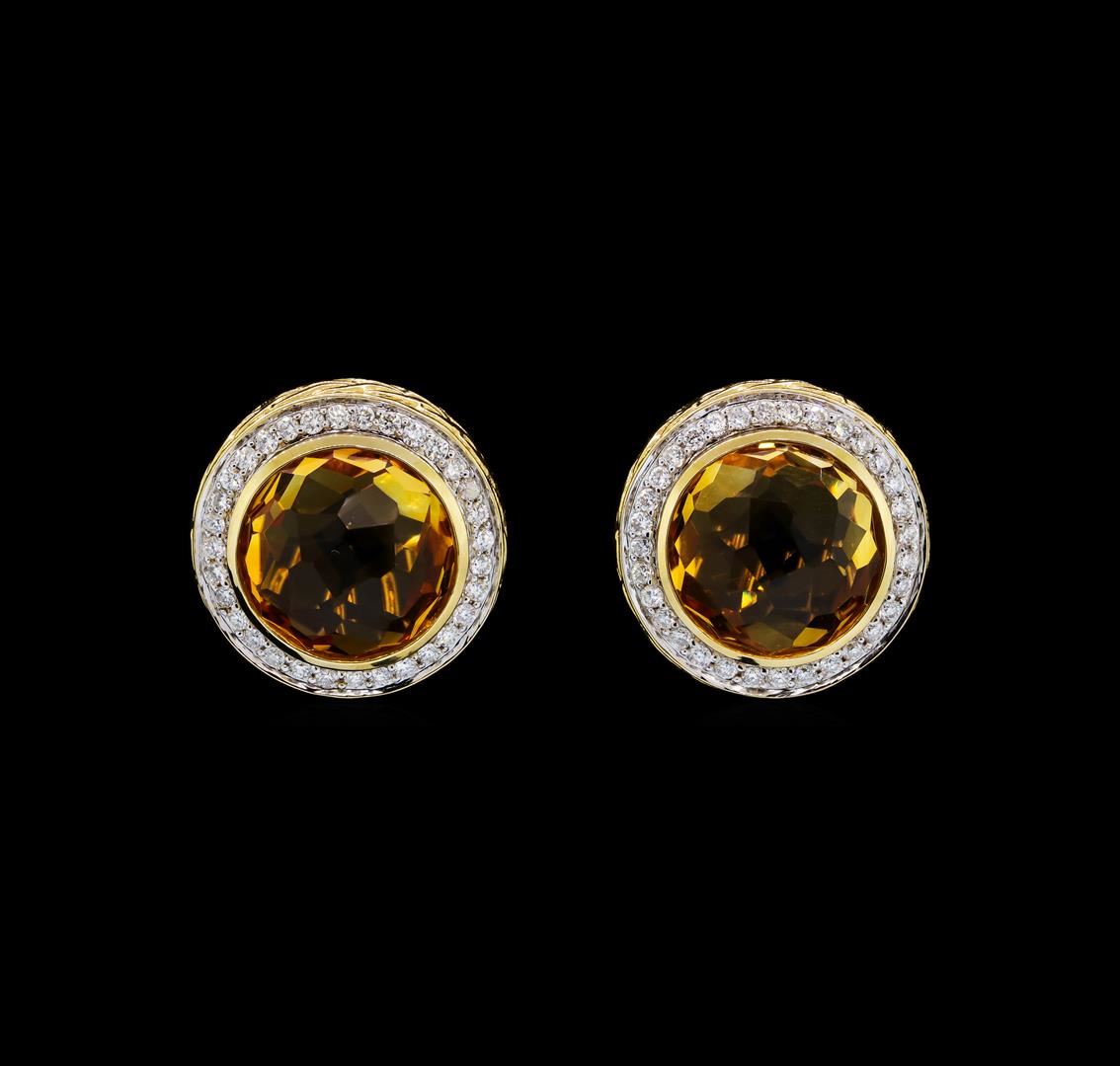 One pair of earrings featuring: 14KT yellow gold weighing 9.2 grams containing two citrine quartzes weighing 8.75ctw and diamonds weighing 0.94ctw.