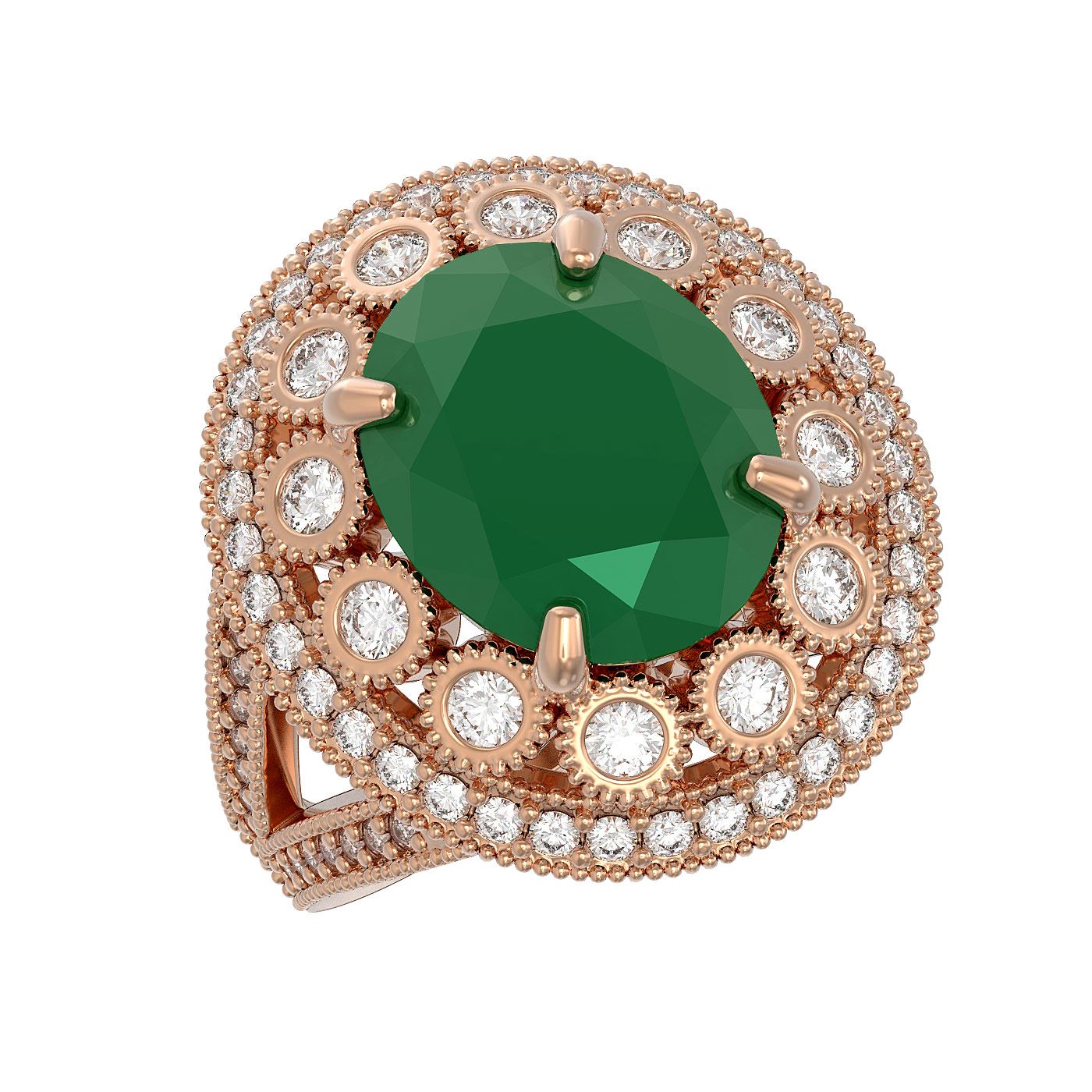 REF-213W5H - SKU: 43737 ---- 8.76 ctw Certified Emerald & Diamond Victorian Ring 14K Rose Gold