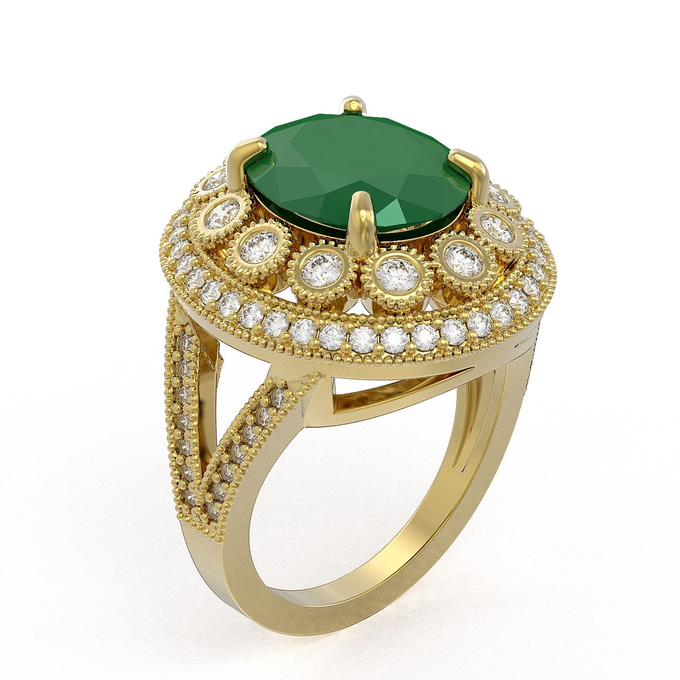 REF-213R5K - SKU: 43738 ---- 8.76 ctw Certified Emerald & Diamond Victorian Ring 14K Yellow Gold