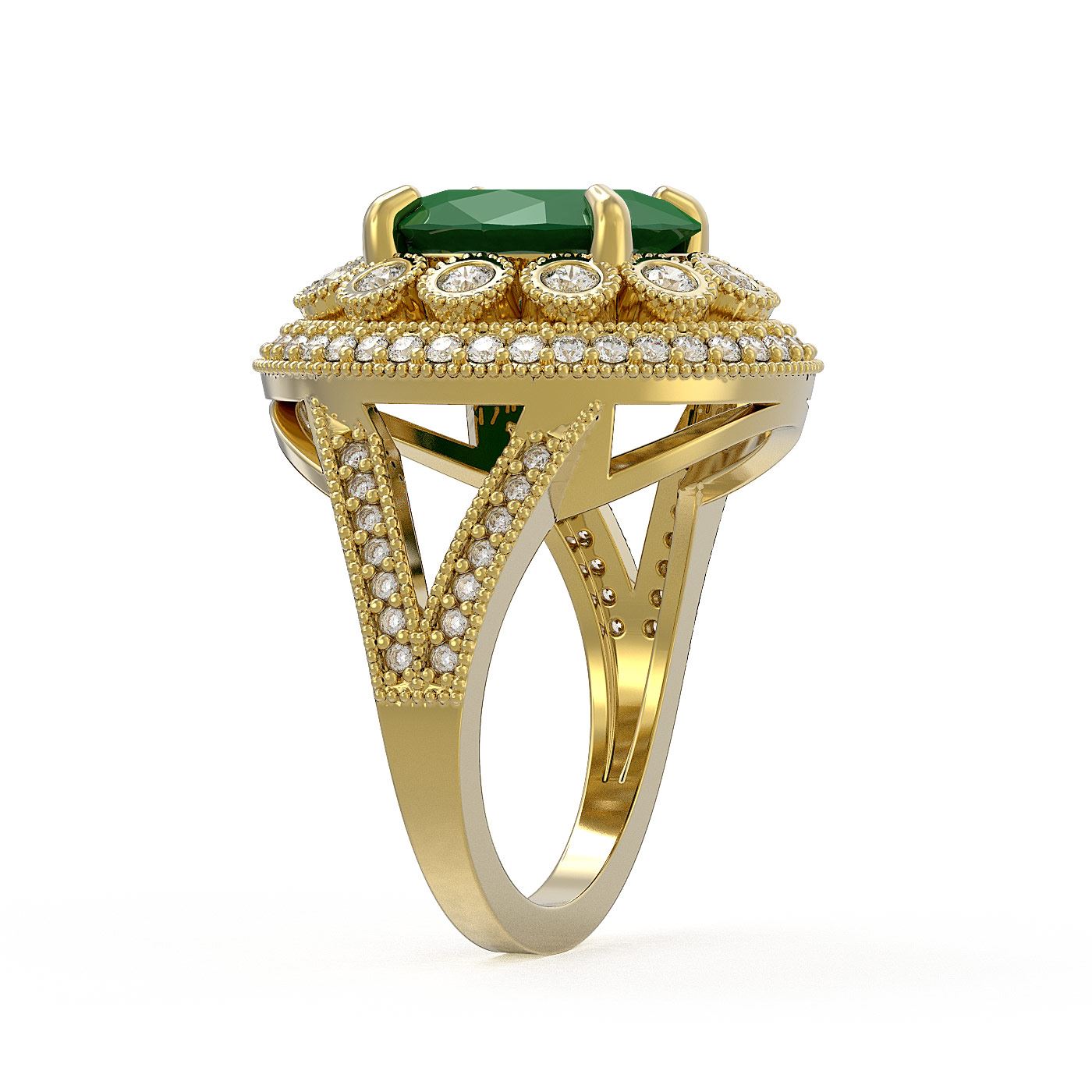 REF-213R5K - SKU: 43738 ---- 8.76 ctw Certified Emerald & Diamond Victorian Ring 14K Yellow Gold