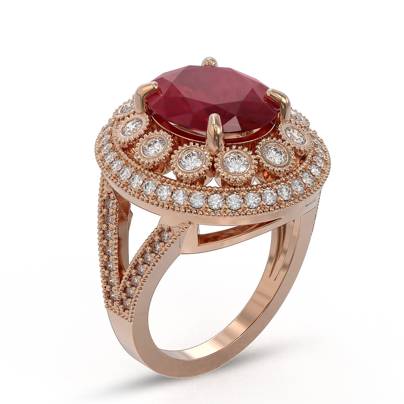 REF-207F3M - SKU: 43740 ---- 8.76 ctw Certified Ruby & Diamond Victorian Ring 14K Rose Gold