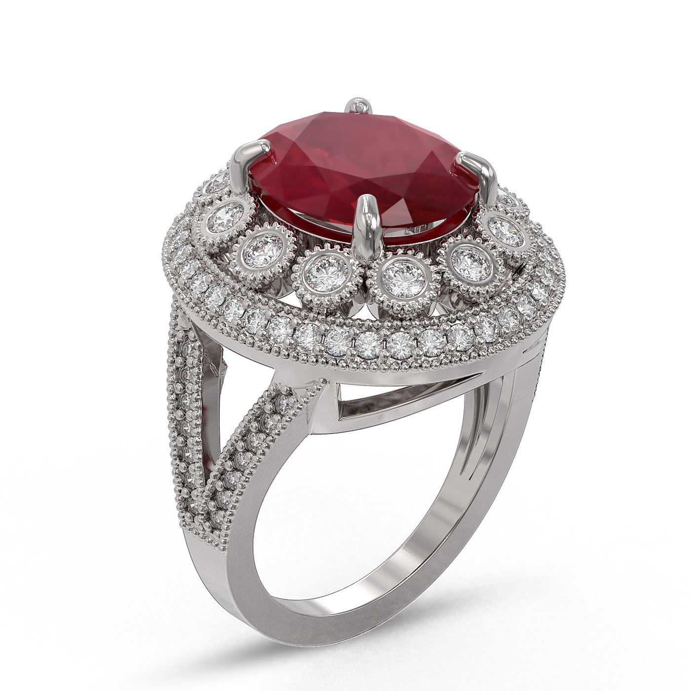 REF-207A3N - SKU: 43739 ---- 8.76 ctw Certified Ruby & Diamond Victorian Ring 14K White Gold