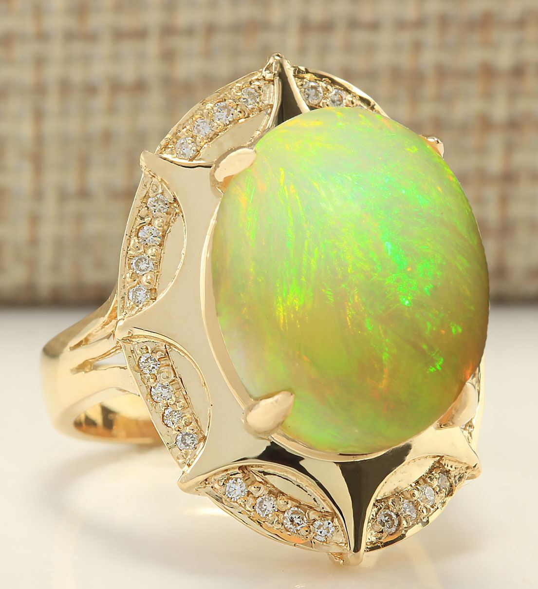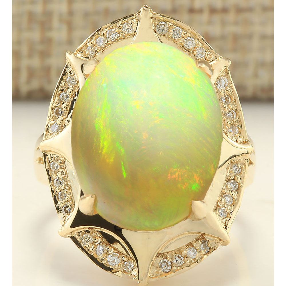 8.77 CTW Natural Opal And Diamond Ring In 18K Yellow Gold