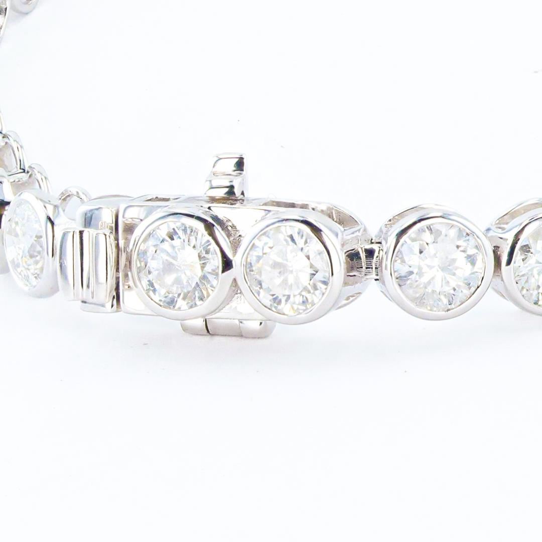 One polished, stamped, and tested 14K white gold bracelet marked Sheffield & Sons. The bracelet is mounted with 36 genuine round diamonds weighing approximately 8.77 carats. The bracelet measures 7 inches in length and is finished with a tension lock clasp and folding safety clasp. This item weighs 10.7 grams, condition is new, excellent workmanship. #MAIN GEMSTONES# Identity: Natural Diamond Shape: Round Cutting Style: Brilliant Cut Quantity: 36 Diamonds Average Diameter: 3.8mm Total Weight: 8.77 carats Color Grade: G-I Clarity Grade: SI3-I2 Cut Grade: Very Good Refractive Index: 2.417 Specific Gravity: 3.52 +/-0.01 Hardness: 10 TOTAL DIAMOND WEIGHT: 8.77 cts WEIGHT OF ITEM: 10.7 grams GOLD CONTENT: 14K White Gold Size: 7