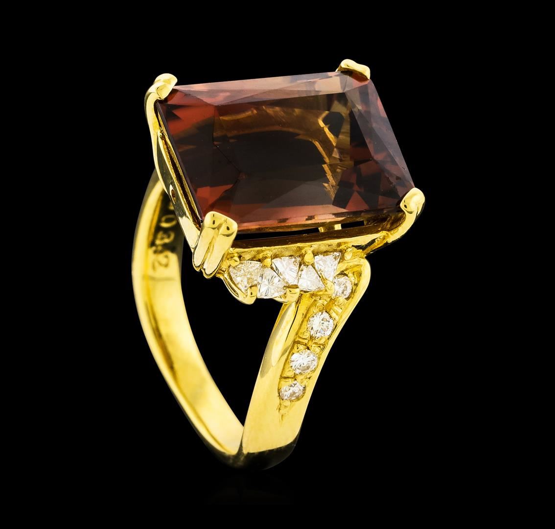 One ring featuring: 18KT Yellow Gold containing Tourmaline with a total weight of 8.78ct and Diamonds with a total weight of 0.34ct. Total Weight of Ring: 8 grams.