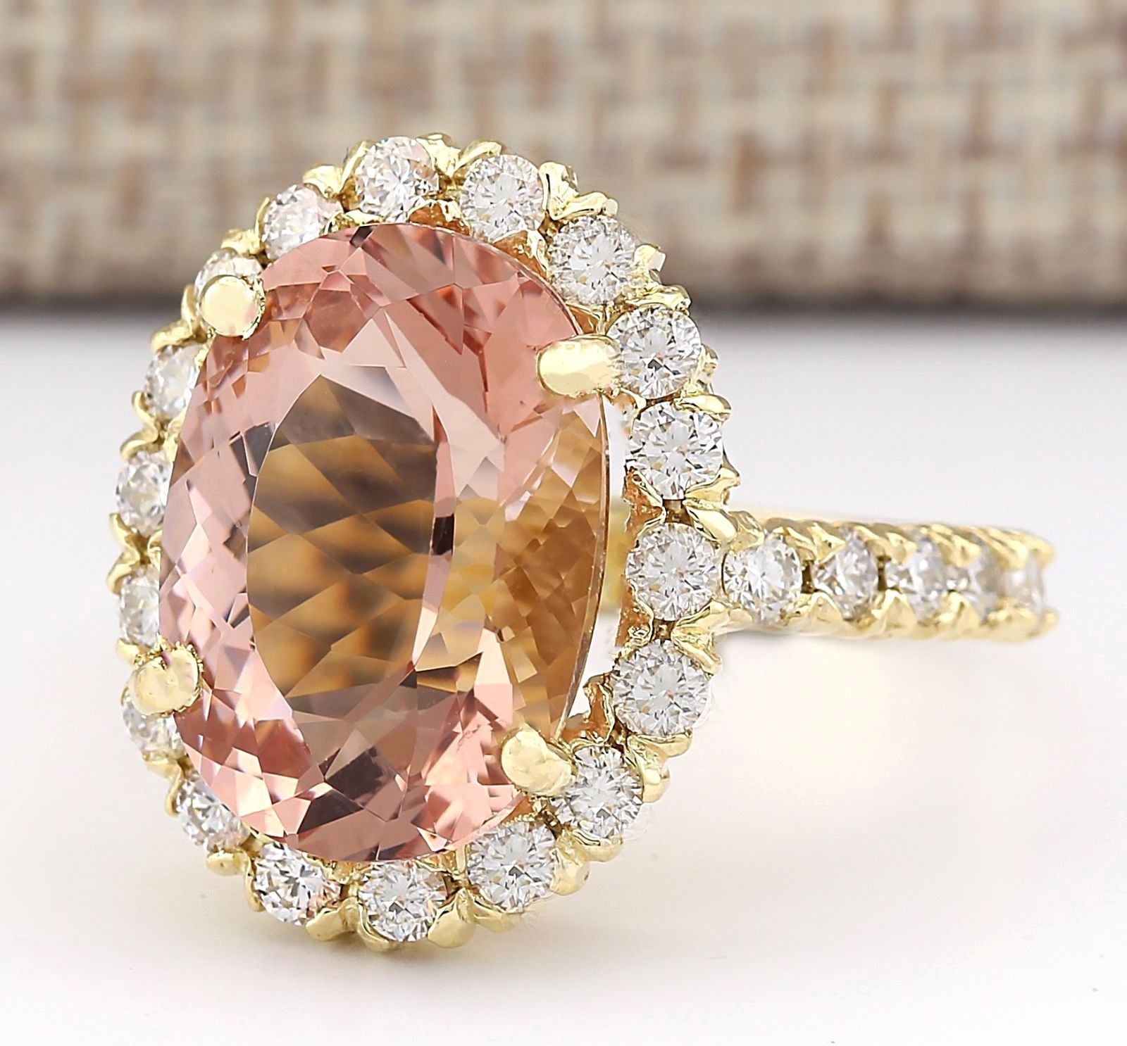 8.79 CTW Natural Morganite And Diamond Ring In 14K Solid Yellow Gold