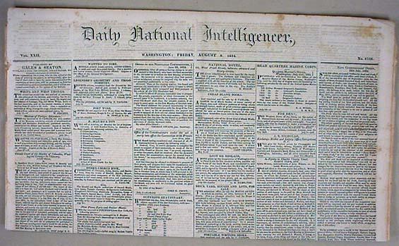 8-8-1834 DAILY NATIONAL INTELLIGENCER NEWSPAPER - Incl. Cash for Negroes ads, $50 and $100 reward for runaway slaves ads, death of William Johnson - Assoc. Justice to the Supreme Court, more