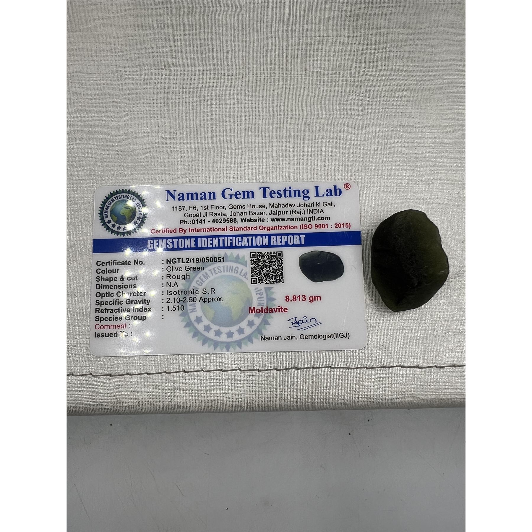 8.8 GRAM CERTIFIED NATURAL GENUINE MOLDAVITE