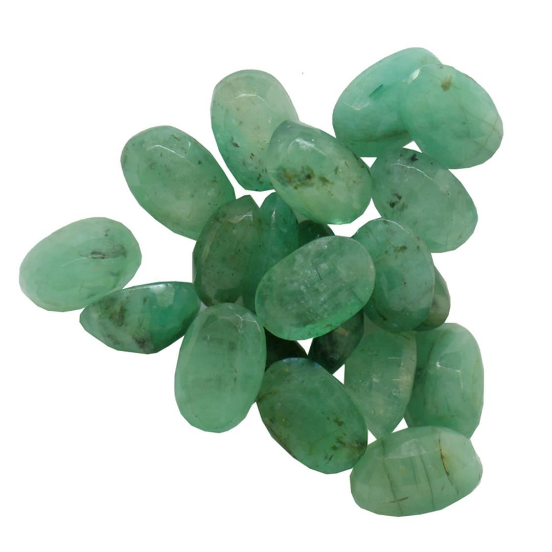 Twenty-one oval mixed cut natural emeralds exact total weight 8.81ct., clarity is heavily included, type III, medium dark, very slightly grayish, very slightly bluish green color, (GIA vslbG 6/3), cut is good. Westfield Appraised at $1,155.00.