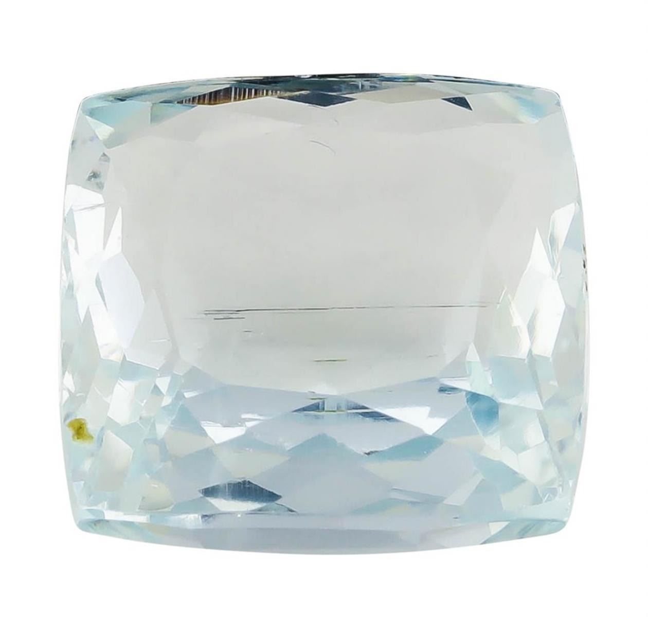 One natural square cushion cut aquamarine with an exact weight of 8.82ct., clarity is slightly included, slightly grayish greenish blue. Gemological Appraisals Services estimates the retail value at $3087 GAS Appraised.