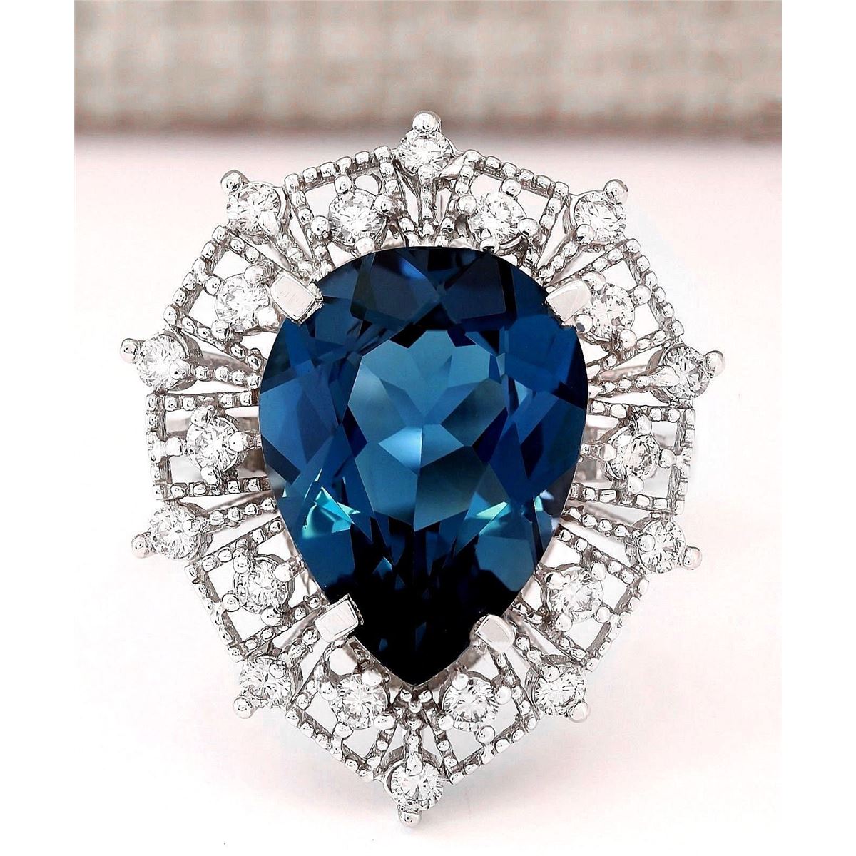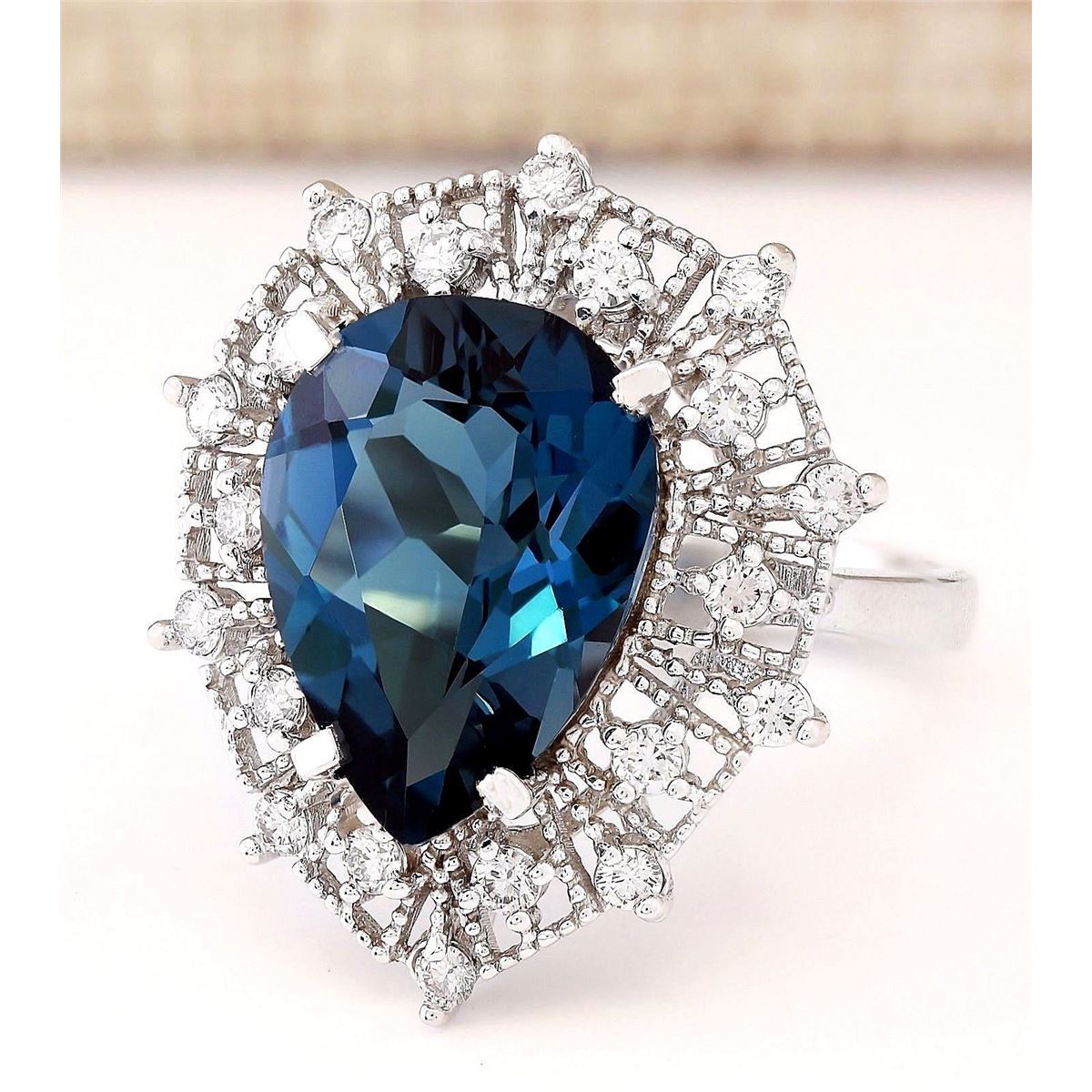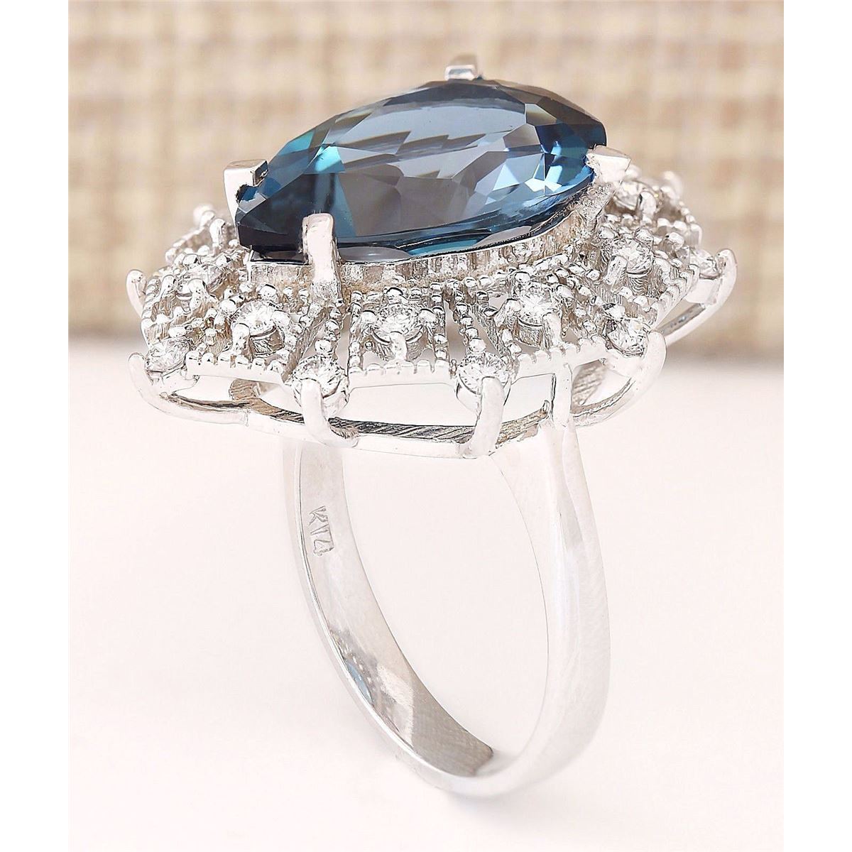 8.84 CTW Natural London Blue Topaz And Diamond Ring In14k Solid White Gold