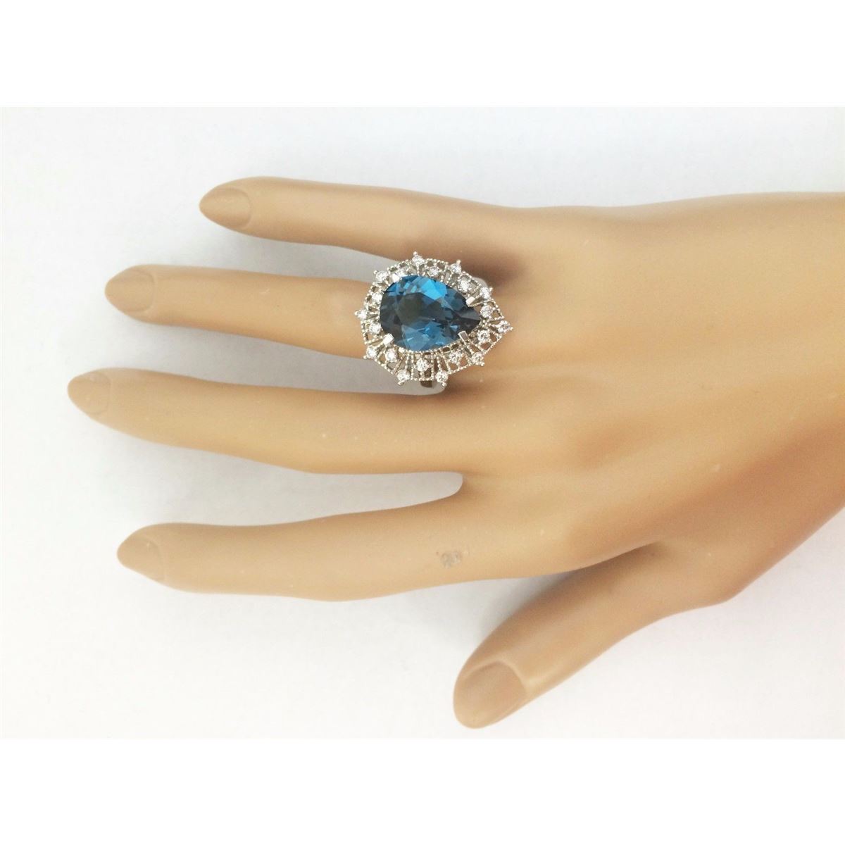 Stamped: 14K Ring Size: 7 Total Ring Weight: 8.3 Grams Diamond Weight: Total natural diamond weight is .65carat. SI1-SI2 clarity / G-H color Gemstone Weight: Total Natural Topaz Weight is 8.19ctw (Measures: 115.85x11.90mm) Main Stone Color: London Blue Face Measures: 26.10x22.14mm SKU: [703416]