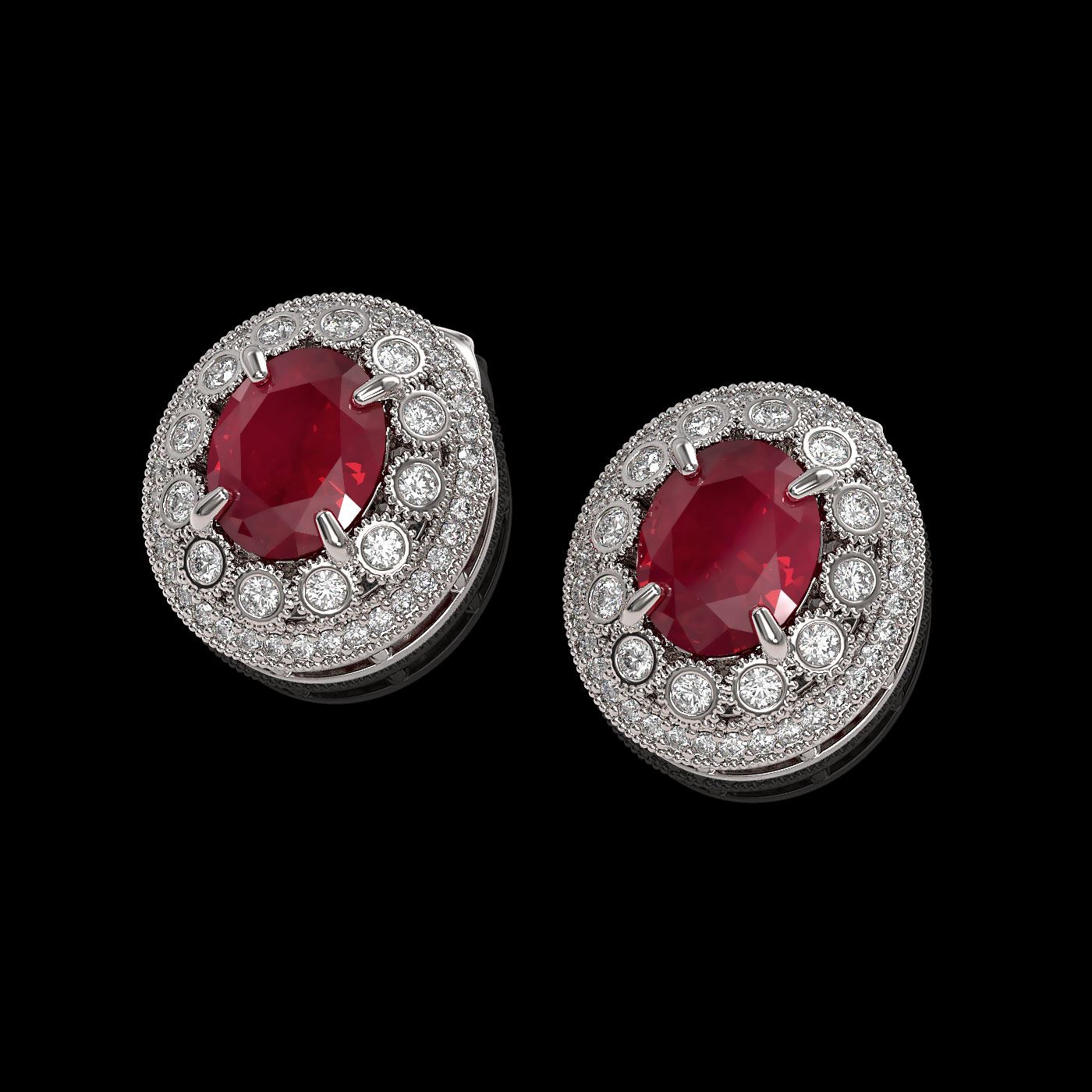 REF-220M8G - SKU: 43631 ---- 8.84 ctw Certified Ruby & Diamond Victorian Earrings 14K White Gold