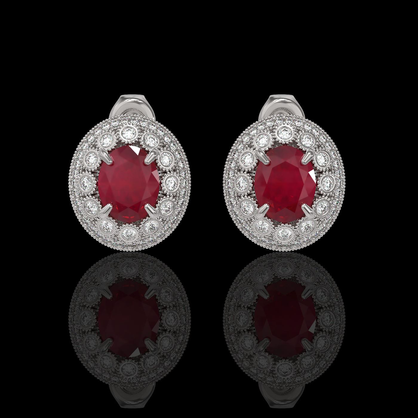 REF-220M8G - SKU: 43631 ---- 8.84 ctw Certified Ruby & Diamond Victorian Earrings 14K White Gold