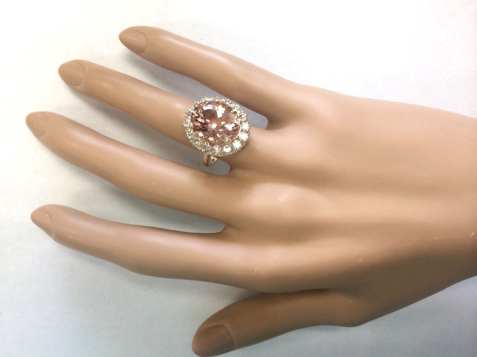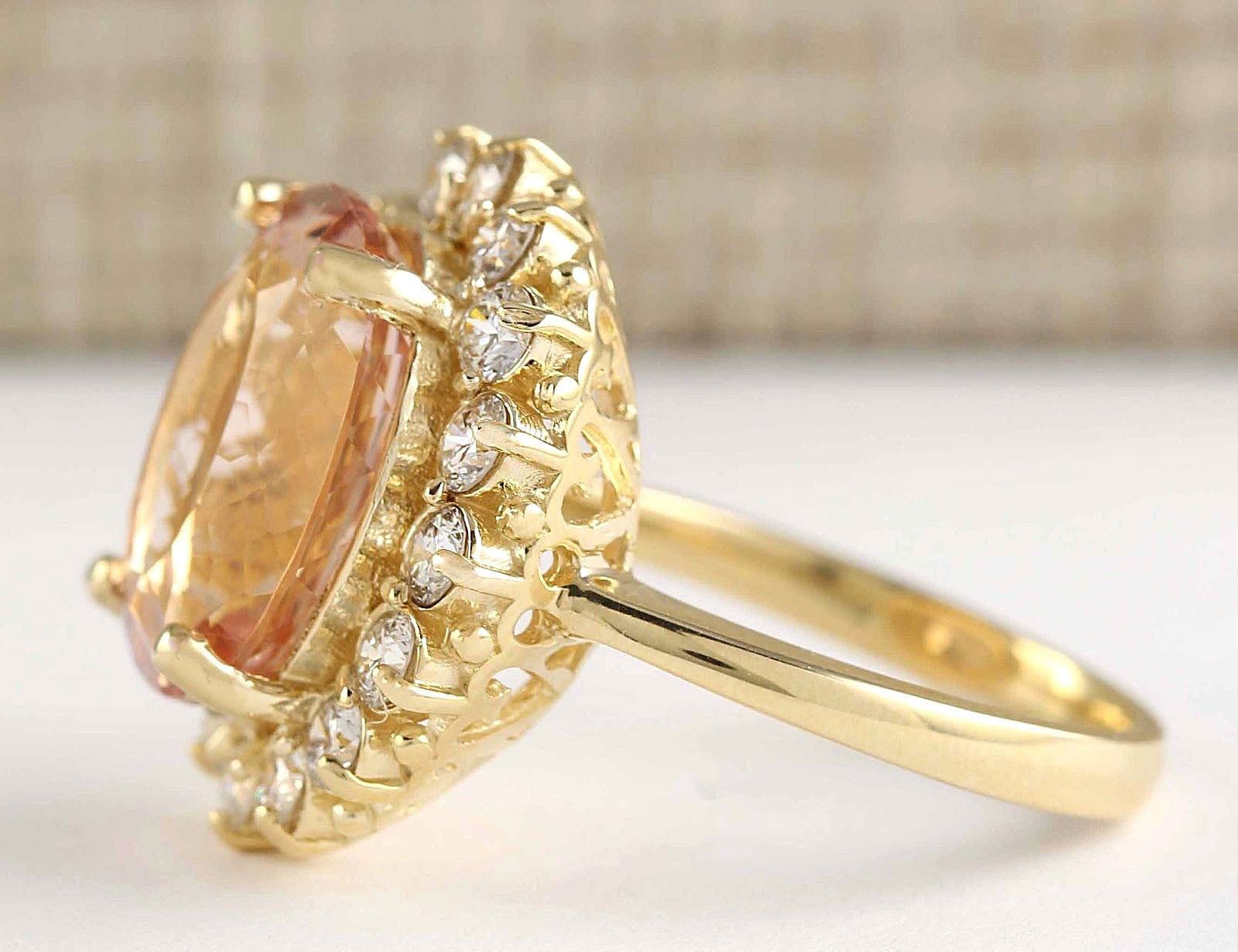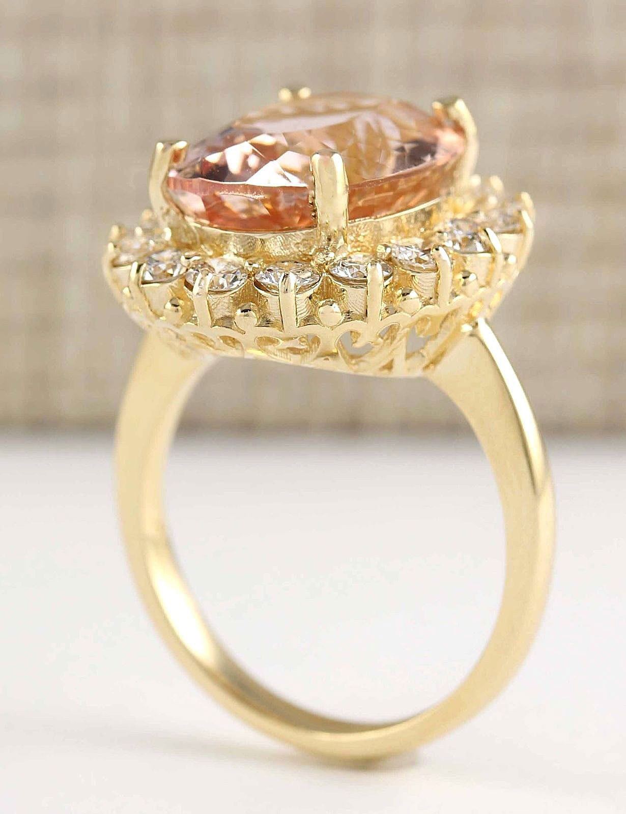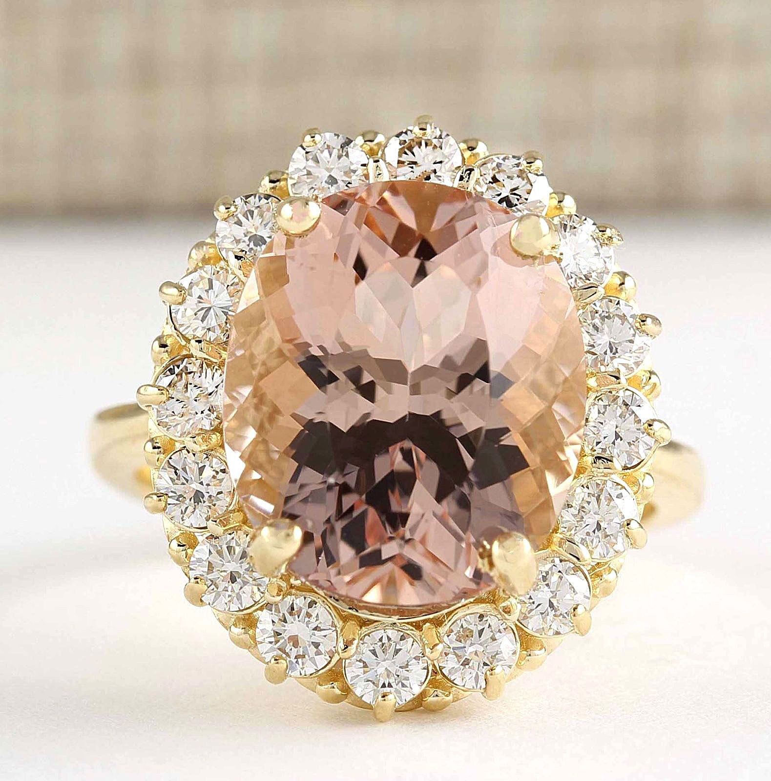 8.85 CTW Natural Morganite And Diamond Ring In 18K Solid Yellow Gold