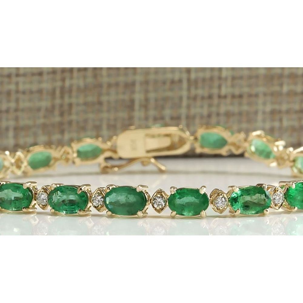 8.86 CTW Natural Colombian Emerald And Diamond Bracelet In 18K Yellow Gold