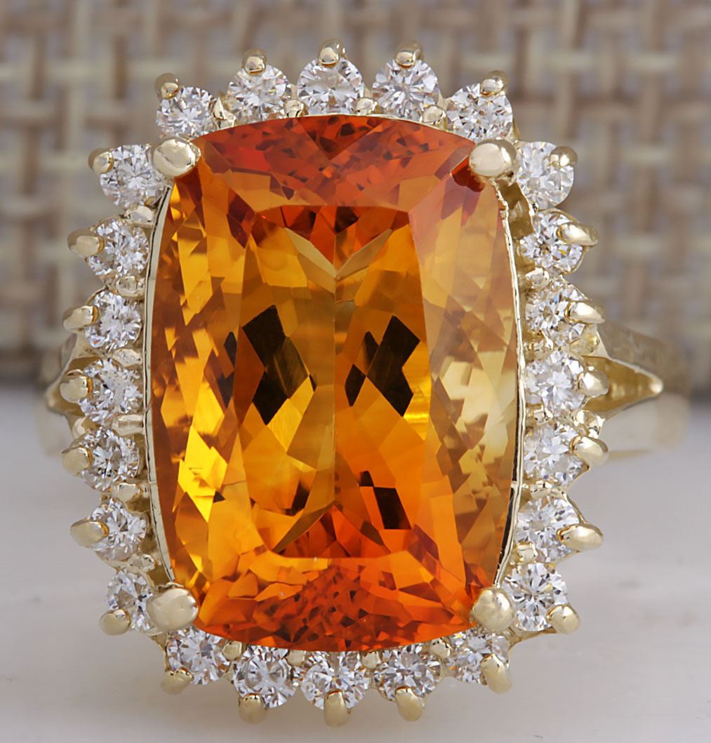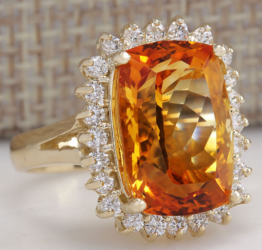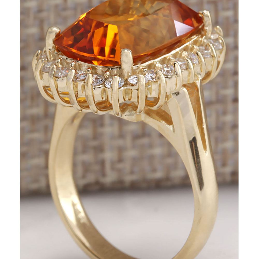 8.87 CTW Natural Citrine And Diamond Ring 18K Solid Yellow Gold