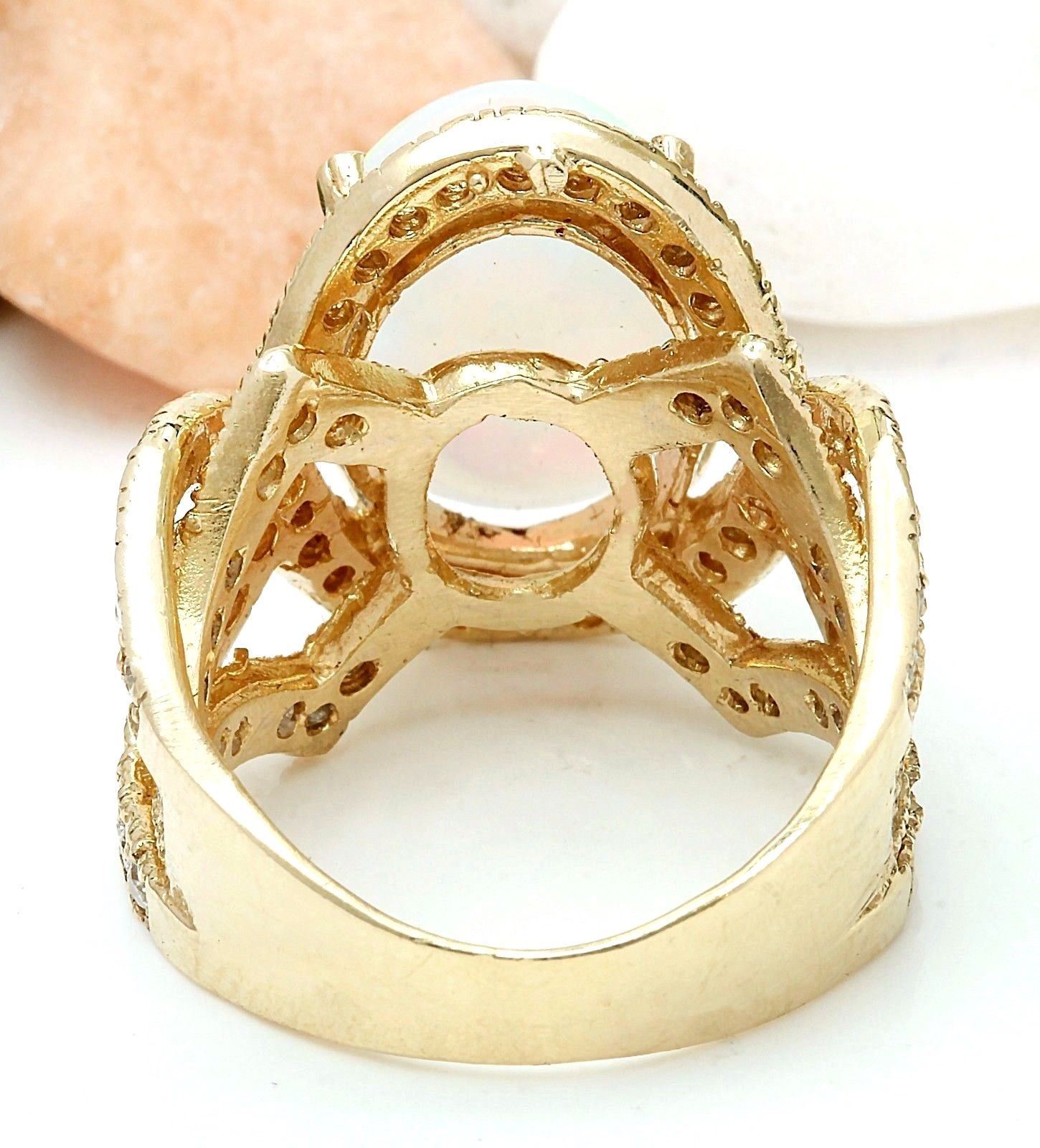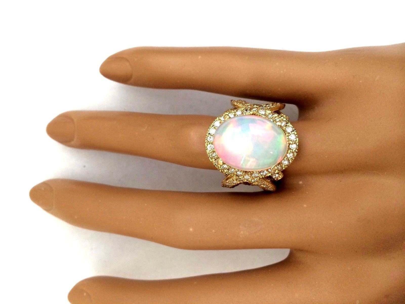 8.88 Carat Natural Opal 18K Solid Yellow Gold Diamond Ring