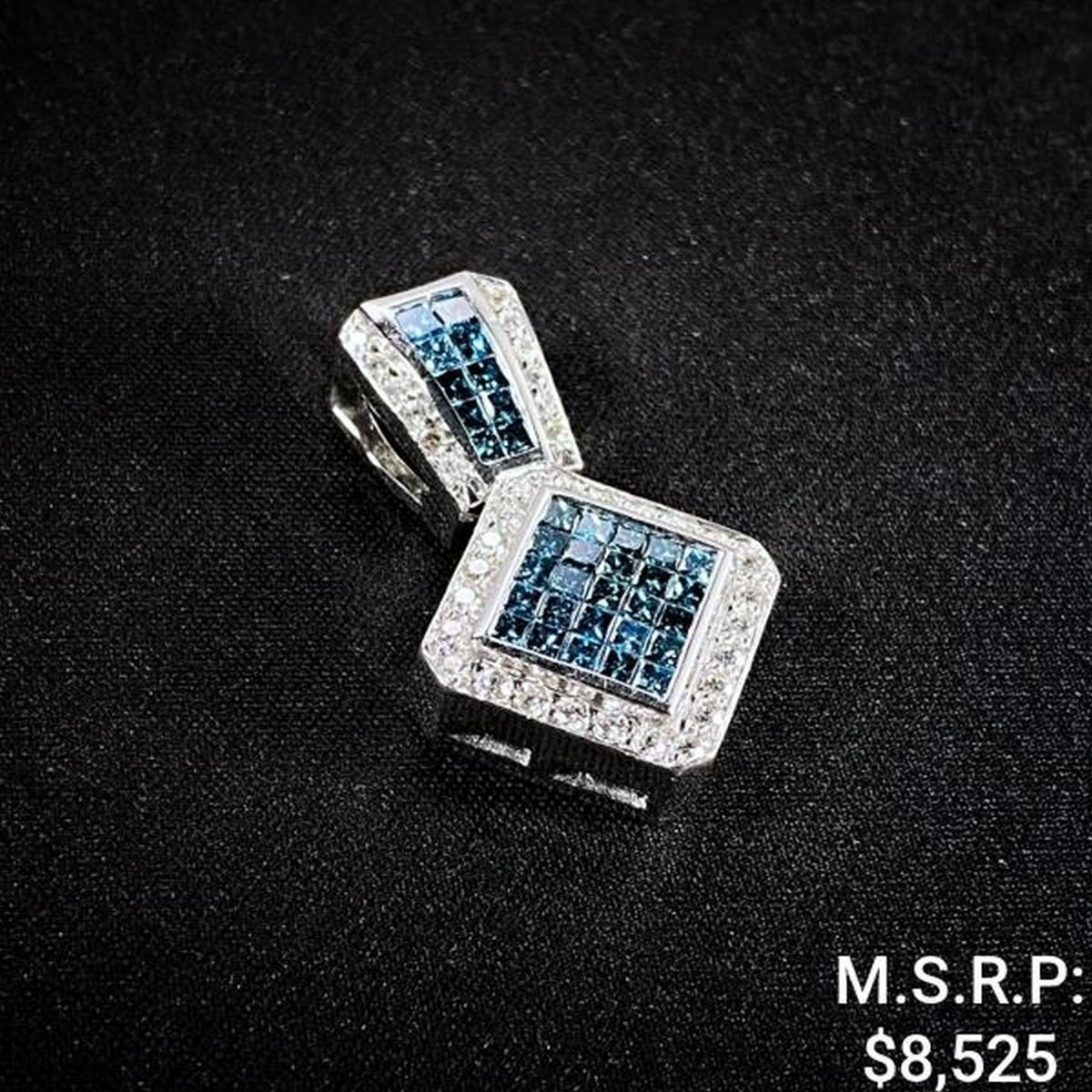 8.9 DWT 14 KT Wht Gold Sqr Pendant w/ Diamond &