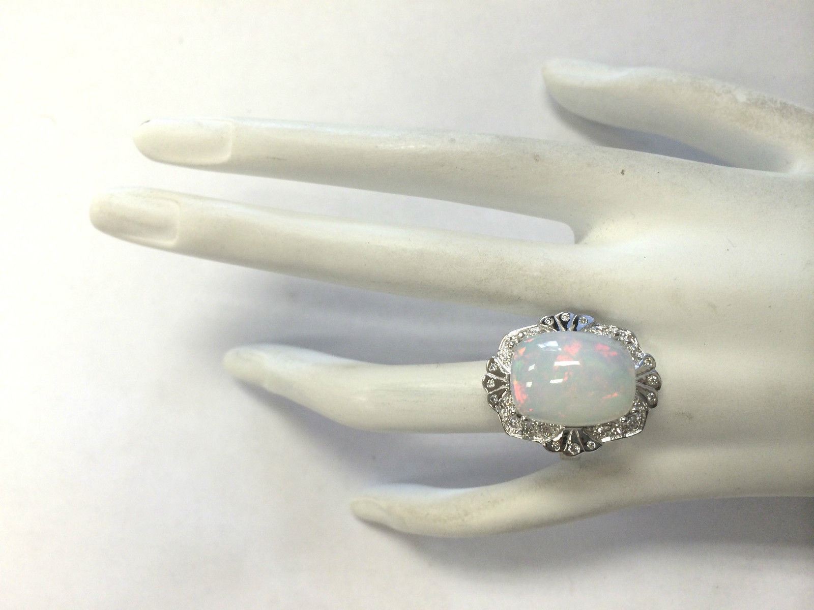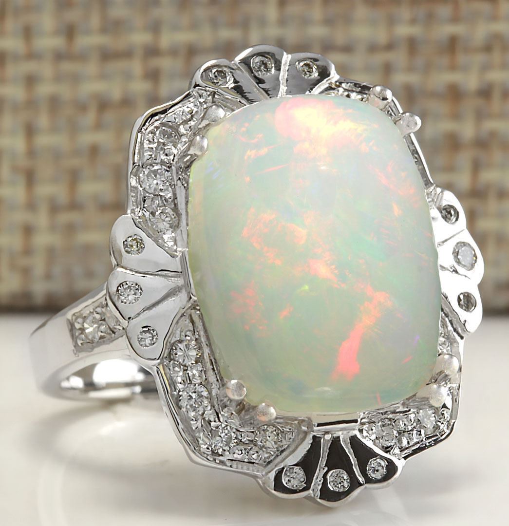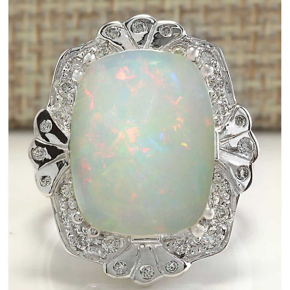 8.92 CTW Natural Opal And Diamond Ring In 14K Solid White Gold