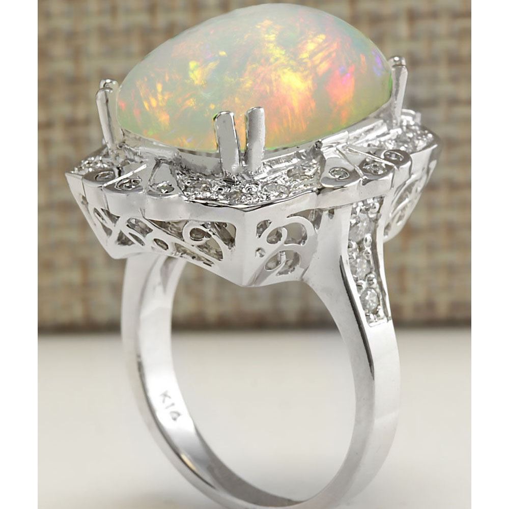 8.92 CTW Natural Opal And Diamond Ring In 18K Solid White Gold