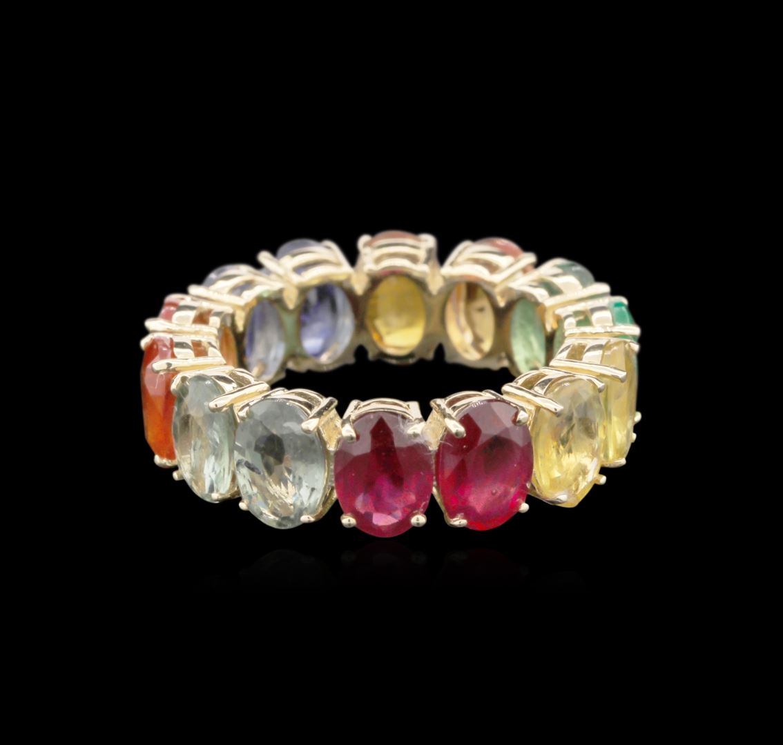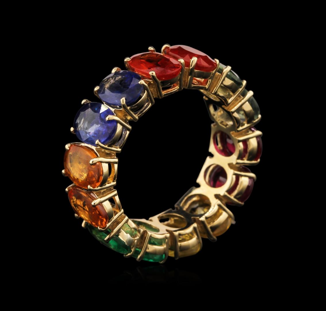 One ring featuring: 14KT yellow gold weighing 4.30 grams containing ten multicolored sapphires with a total weight of 8.93ct and four rubies with a total weight of 3.25ct.