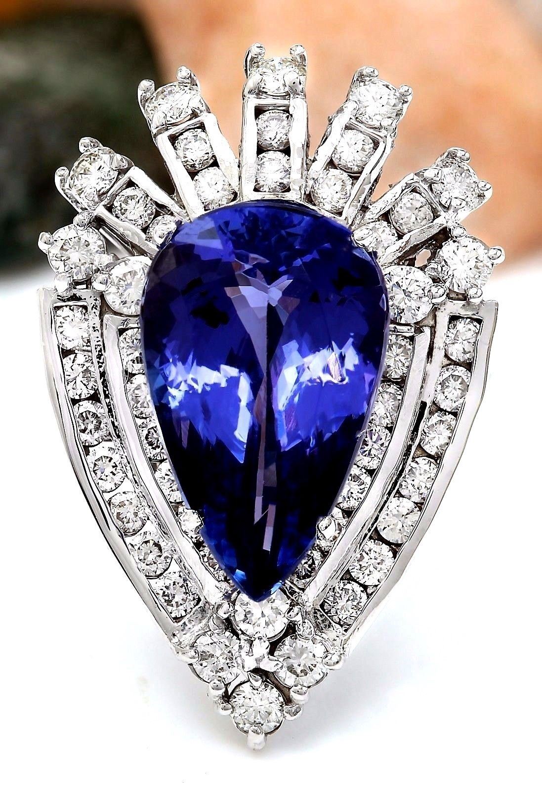 8.94 Carat Natural Tanzanite 18K Solid White Gold Diamond Ring