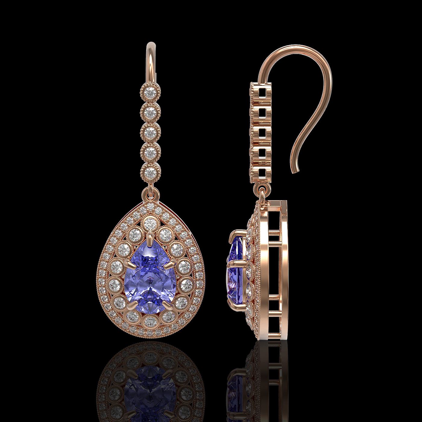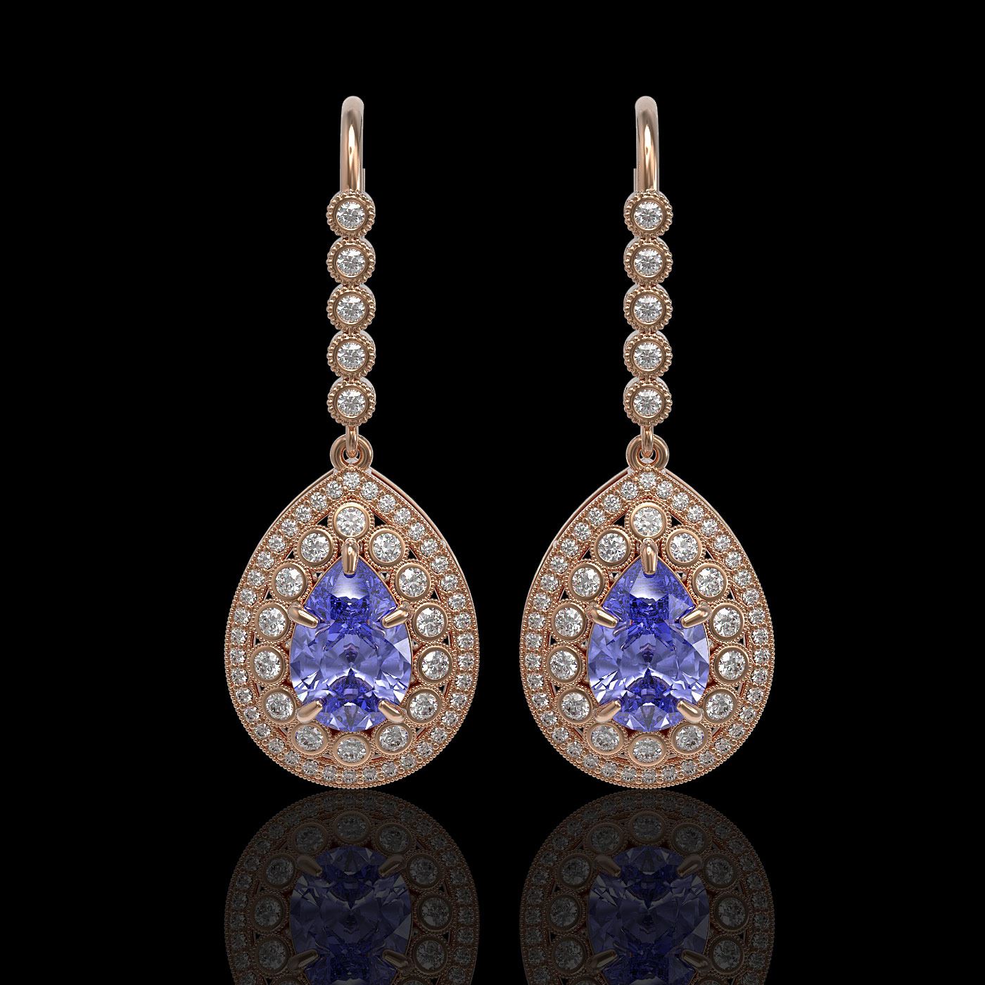 REF-345A5N - SKU: 43155 ---- 8.95 ctw Tanzanite & Diamond Victorian Earrings 14K Rose Gold